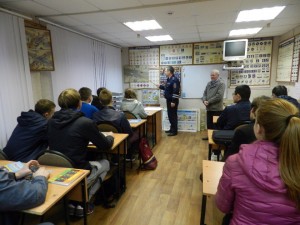 Старший инспектор штаба ОБ ДПС ГИБДД УВД России по Курской области, капитан полиции Александр Игоревич Жиленков рассказал присутствующим об истории службы, ее ветеранах и действующих сотрудниках. Проинформировал о дорожных ситуациях в регионе и профилактических мероприятиях по ее стабилизации, о световозвращателях и обязательном их использовании в тёмное время суток.