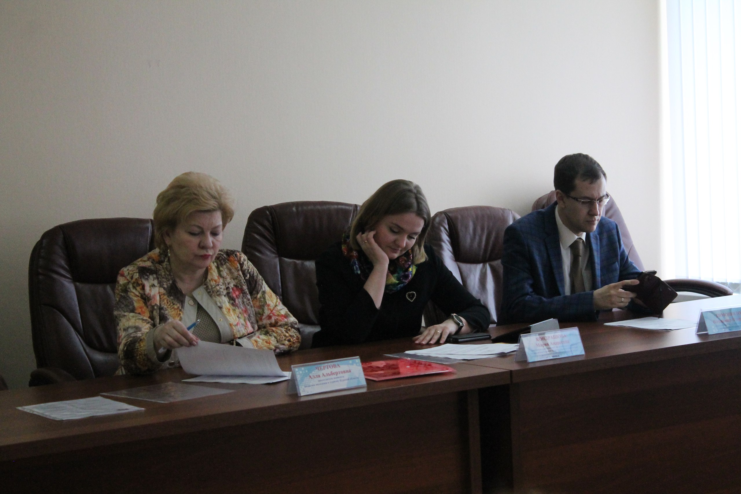 На заседании присутствовала и осветила несколько вопросов Алла Альбертовна Чертова — председатель комитета по делам молодежи и туризму Курской области.