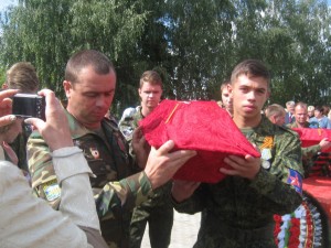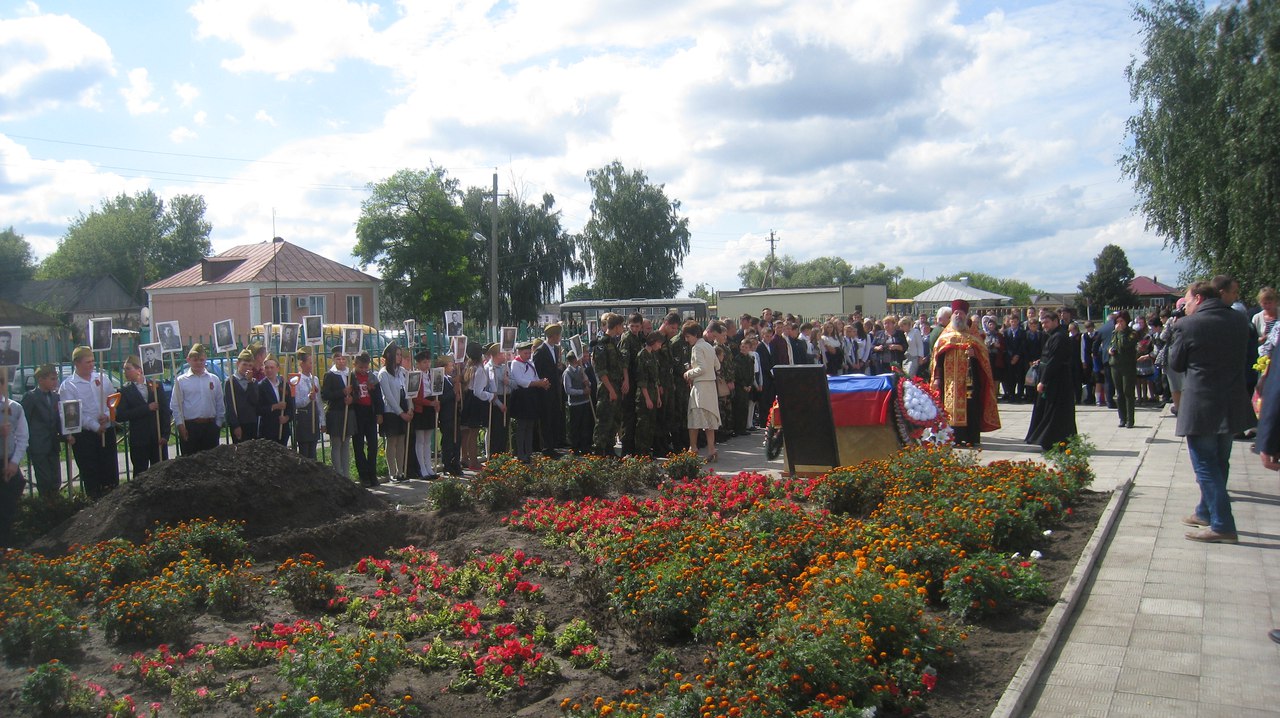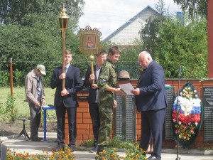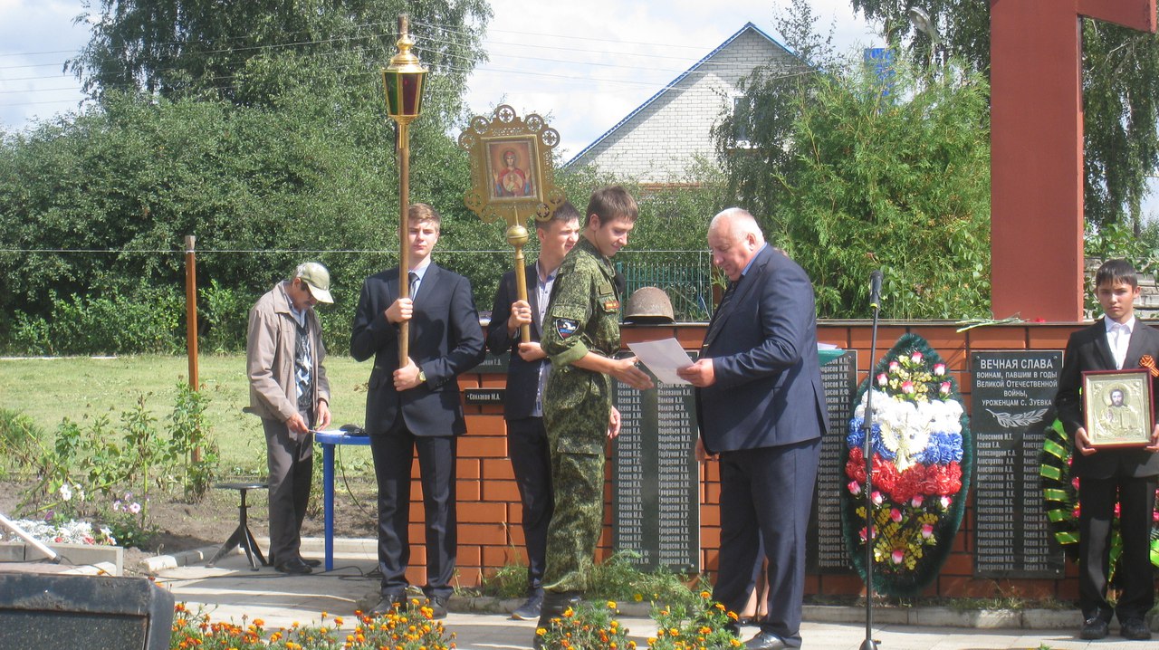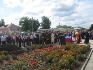 Церемония прошла в с. Зуевка. Останки были найдены во время проведения областной поисковой экспедиции «Вахта Памяти-2017» в с. Дежевка и д. Ивановка Солнцевского района.