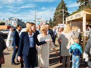 Председатель комитета по делам молодежи и туризму Курской области Алла Чертова и председатель комитета потребительского рынка, развития малого предпринимательства и лицензирования Курской области Михаил Аксёнов посетили все экспозиции и пообщались с каждым участником выставки.