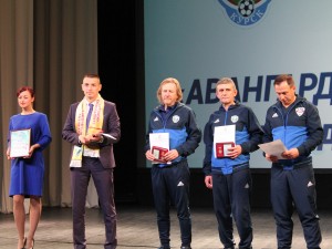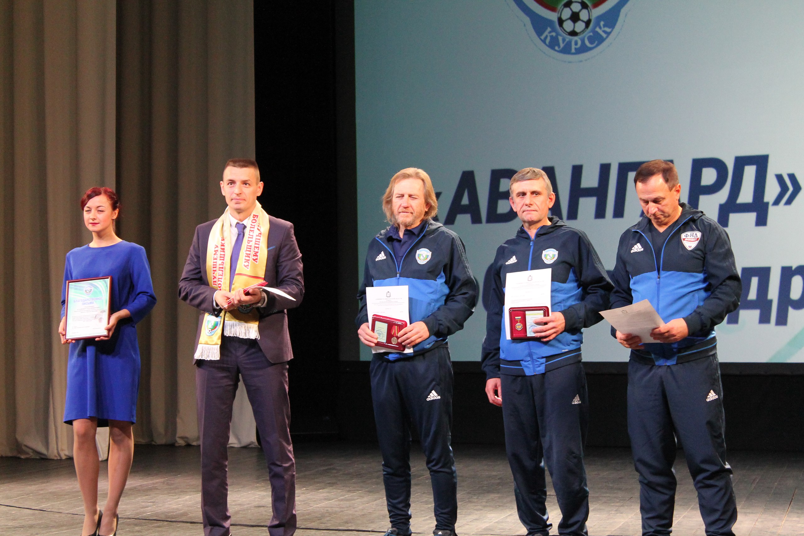 Сегодня в Областном Дворце Молодежи прошла торжественная встреча ФК «Авангард» с болельщиками. На пресс-конференции, на которой присутствовали тренерский штаб и руководство команды, у каждого была возможность задать интересующие вопросы футболистам. По завершению встречи вся команда «Авангард» собралась в большом зале, где были подведены итоги уходящего года, в котором нашему клубу есть чем гордиться.