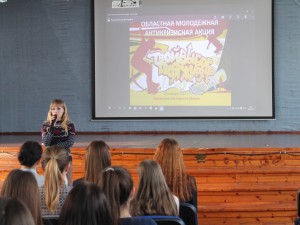 Бирдус Анастасия Алексеевна, главный психолог ОБУ «Областной Дворец молодежи» выступила с информацией об областной молодежной антикризисной акции «Твой выбор – твоя жизнь», реализующейся на территории Курской области.