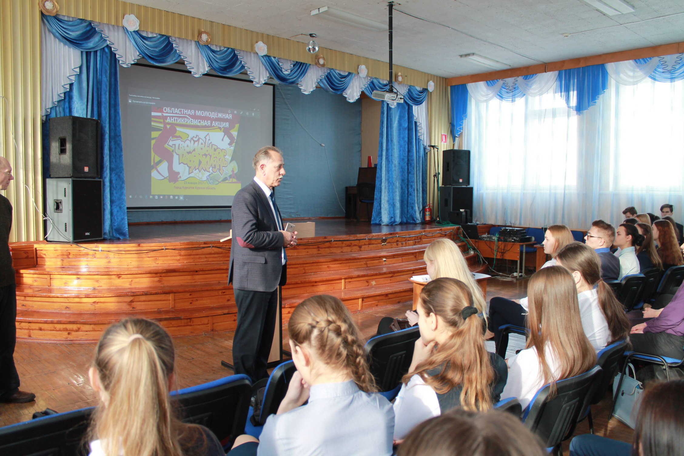23 января 2018 года в МБОУ «Гимназия №1» города Курчатова Курской области состоялся информационно-тематический семинар на тему: «Профилактика ВИЧ, СПИД, ИППП в молодежной среде, формирование здоровьесберегающего мировоззрения молодежи и подростков» в рамках реализации областной молодежной антикризисной акции «Твой выбор – твоя жизнь».