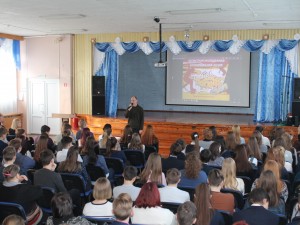 Врач – нарколог ОБУЗ «Областная наркологическая больница», Горячев Сергей Алексеевич рассказал собравшимся о современной проблематике алкоголизма, наркомании и токсикомании в социуме, особенностях развития разных видов зависимостей в молодежной среде, мерах и способах профилактики и лечения. В завершении выступления был продемонстрирован короткометражный фильм из серии «Береги себя», созданный при поддержке Минздрава РФ, наглядно демонстрирующий разрушительное воздействие алкоголя на все сферы жизни человека.