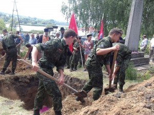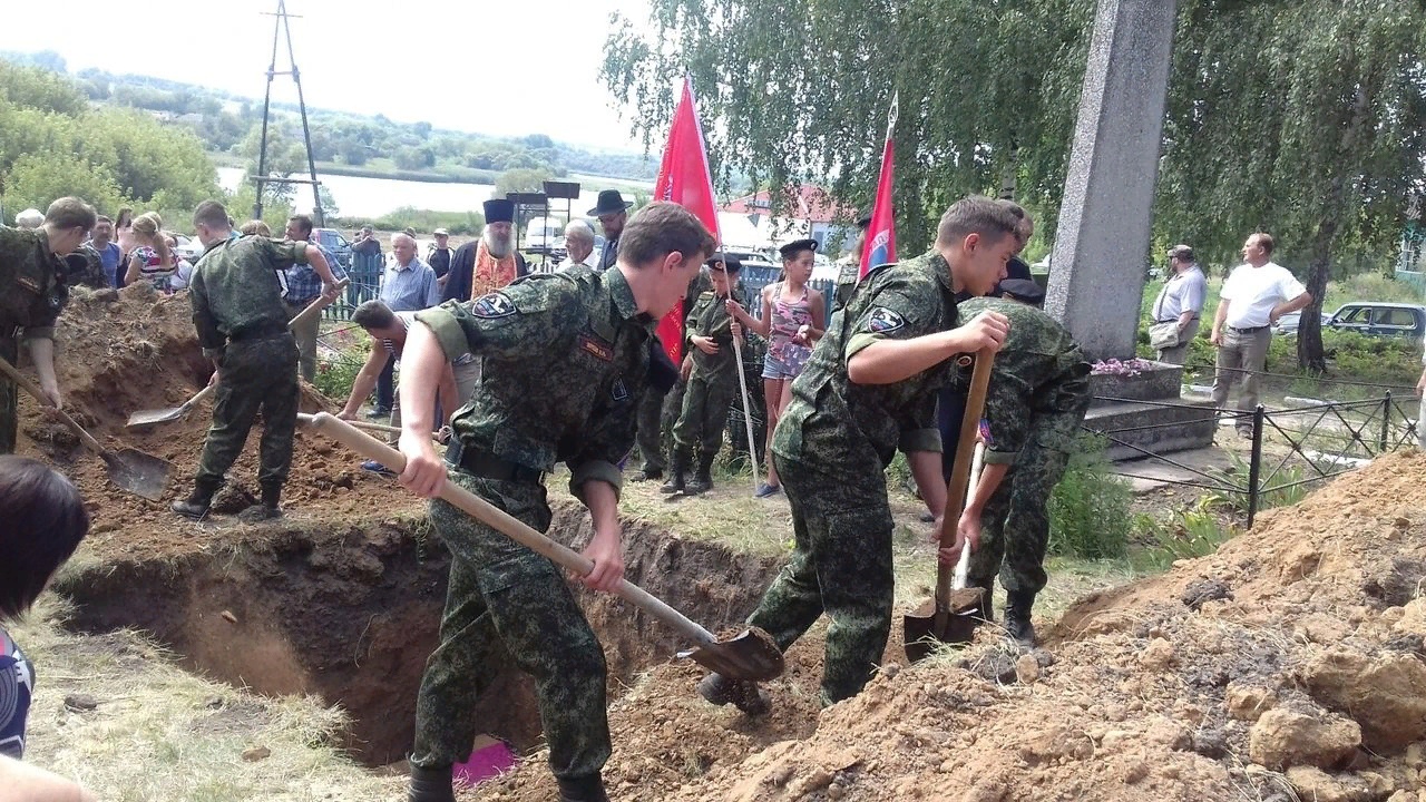 Сегодня с Солнцевском районе Курской области прошло перезахоронение останков мирных жителей, погибших на территории с. Чермошное в годы Великой Отечественной войны.