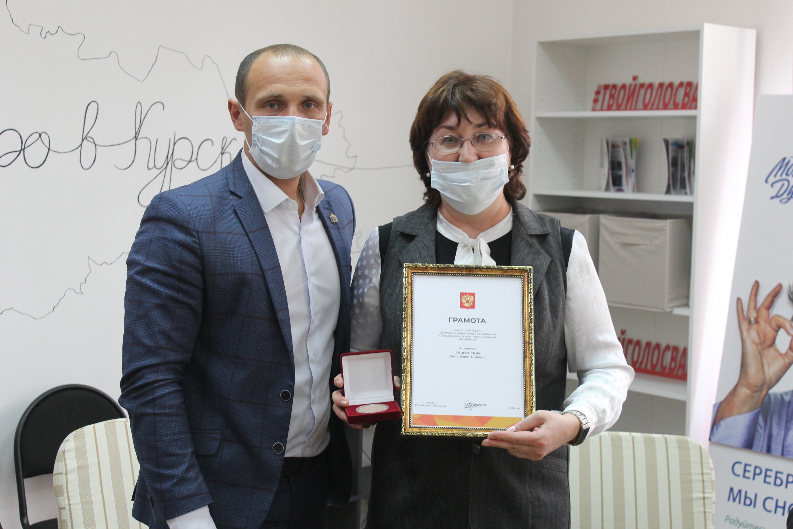 Также приятным моментом стало награждение участников Акции #МыВместе памятными медалями Президента РФ В.В. Путина среди которых и сотрудники областного Дворца молодежи.