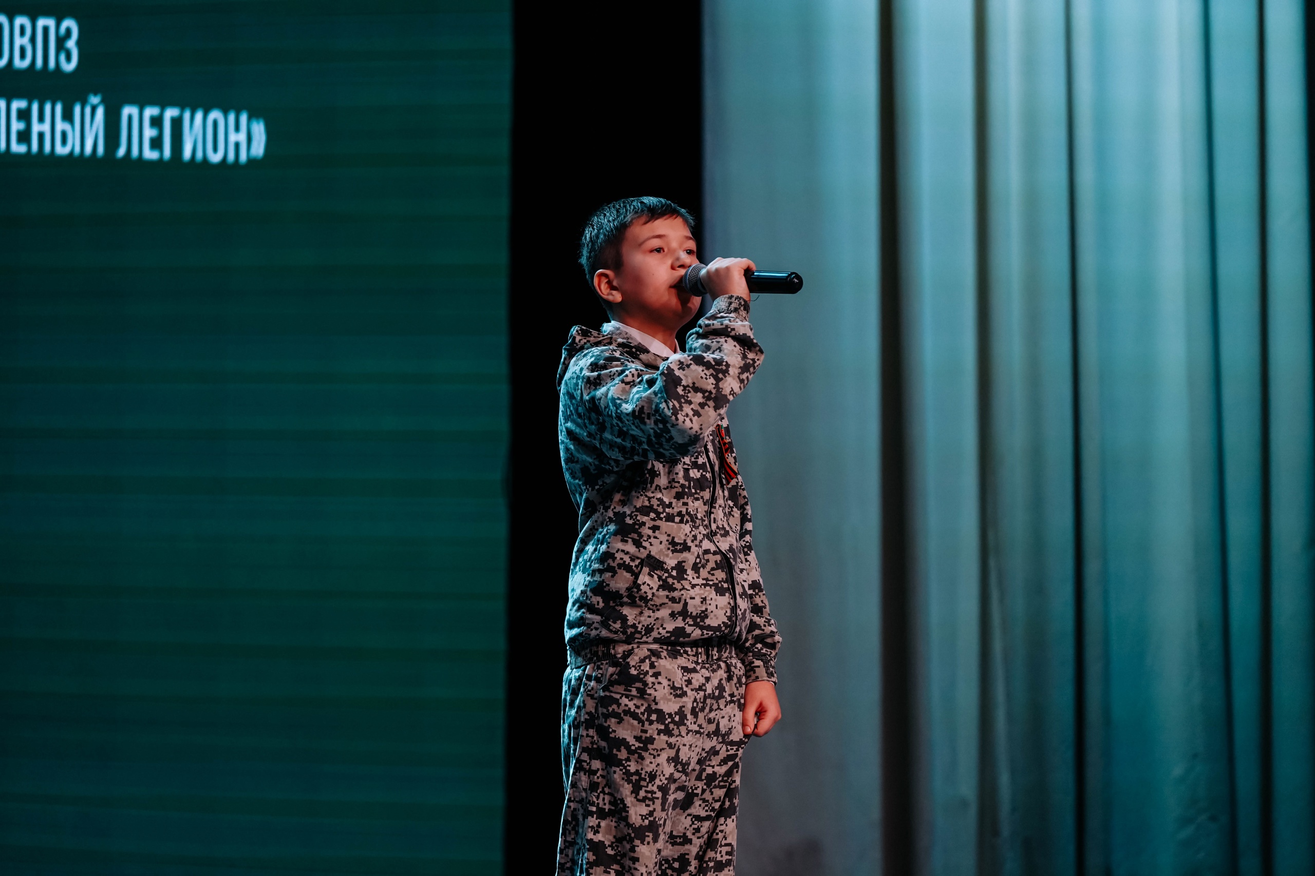 Юные исполнители, воспевавшие Россию и ее защитников, получили горячую поддержку зрителей.