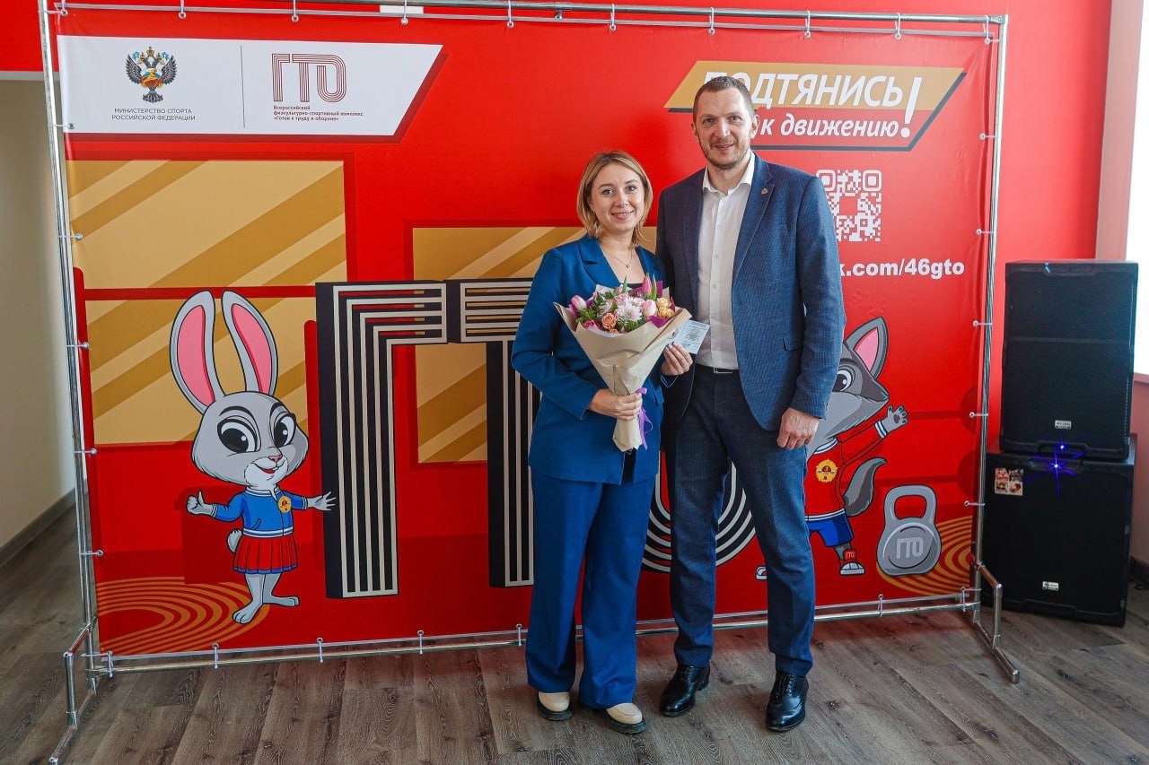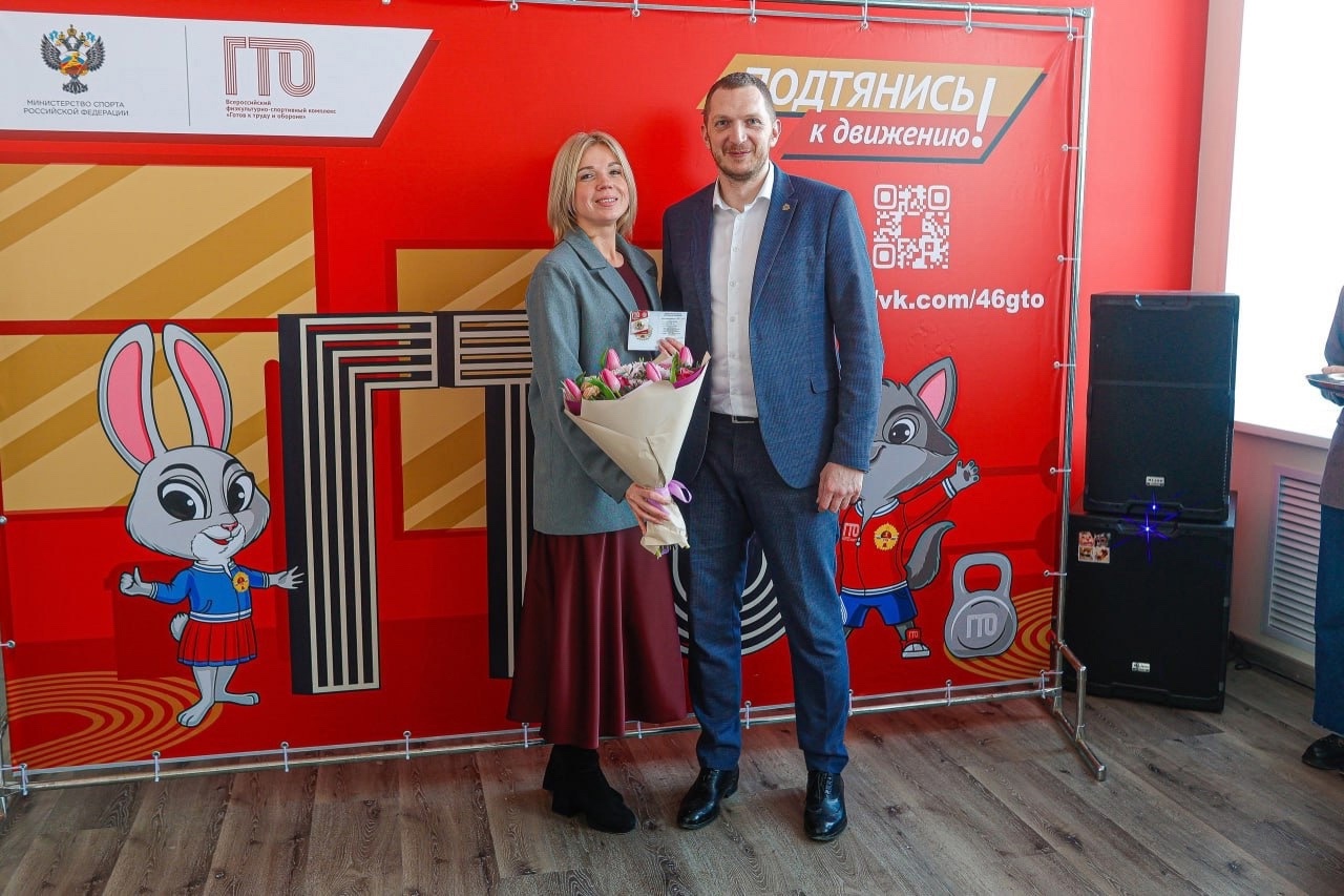И.о. министра физической культуры и спорта Курской области Вячеслав Харитонов поздравил с получением золотых знаков Всероссийского физкультурно-спортивного комплекса «Готов к труду и обороне»: