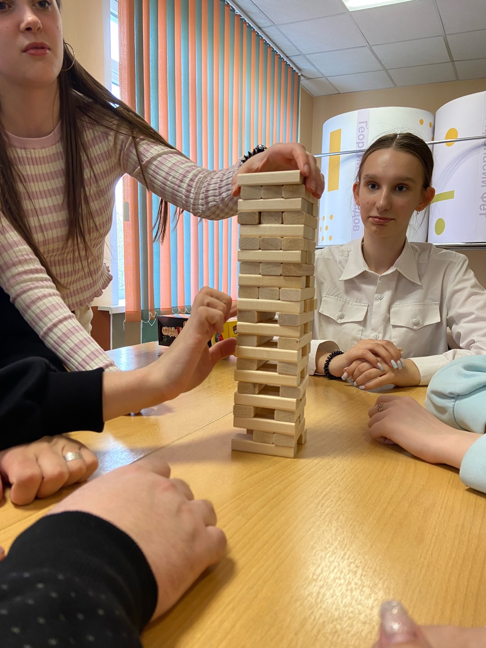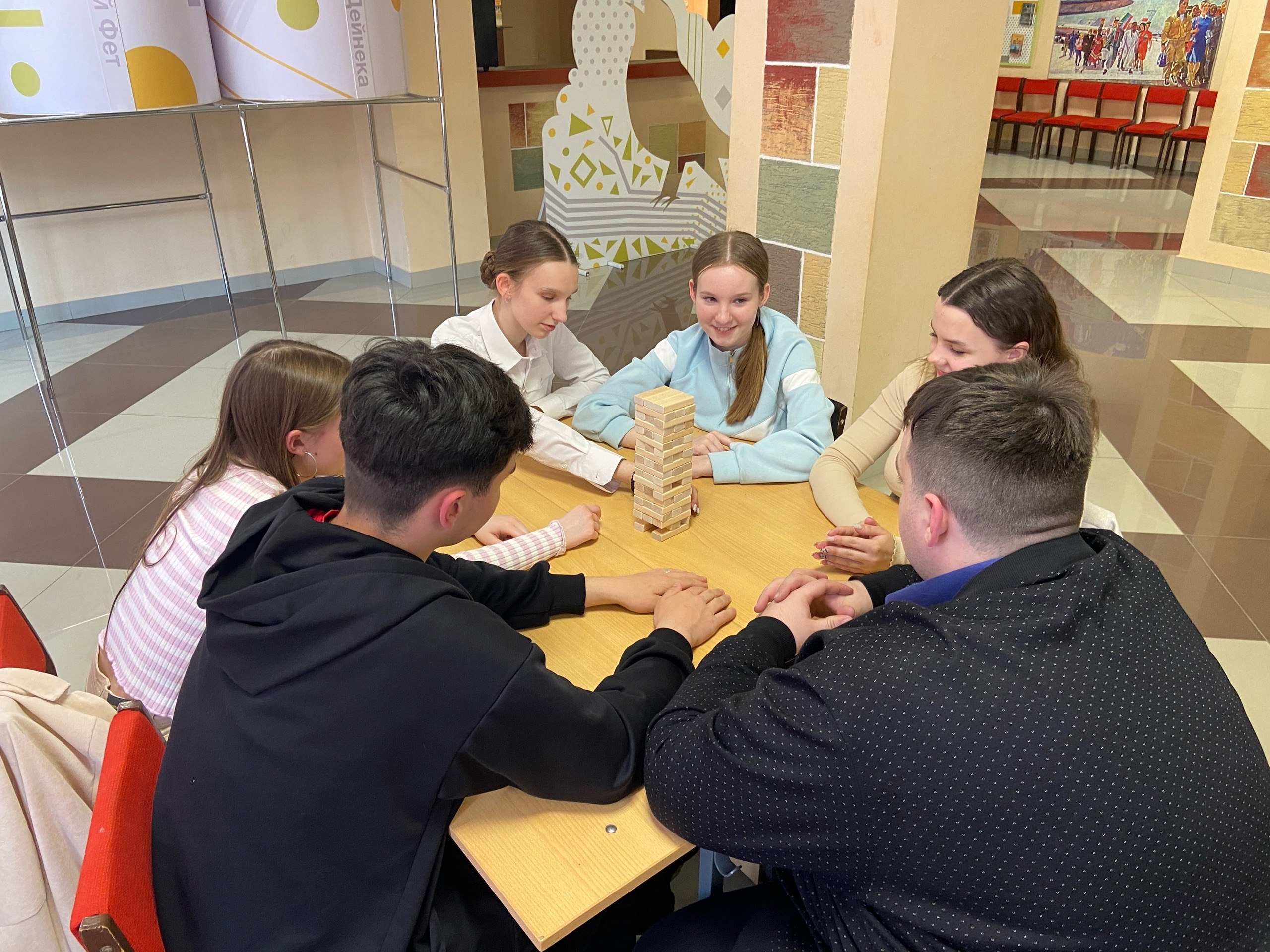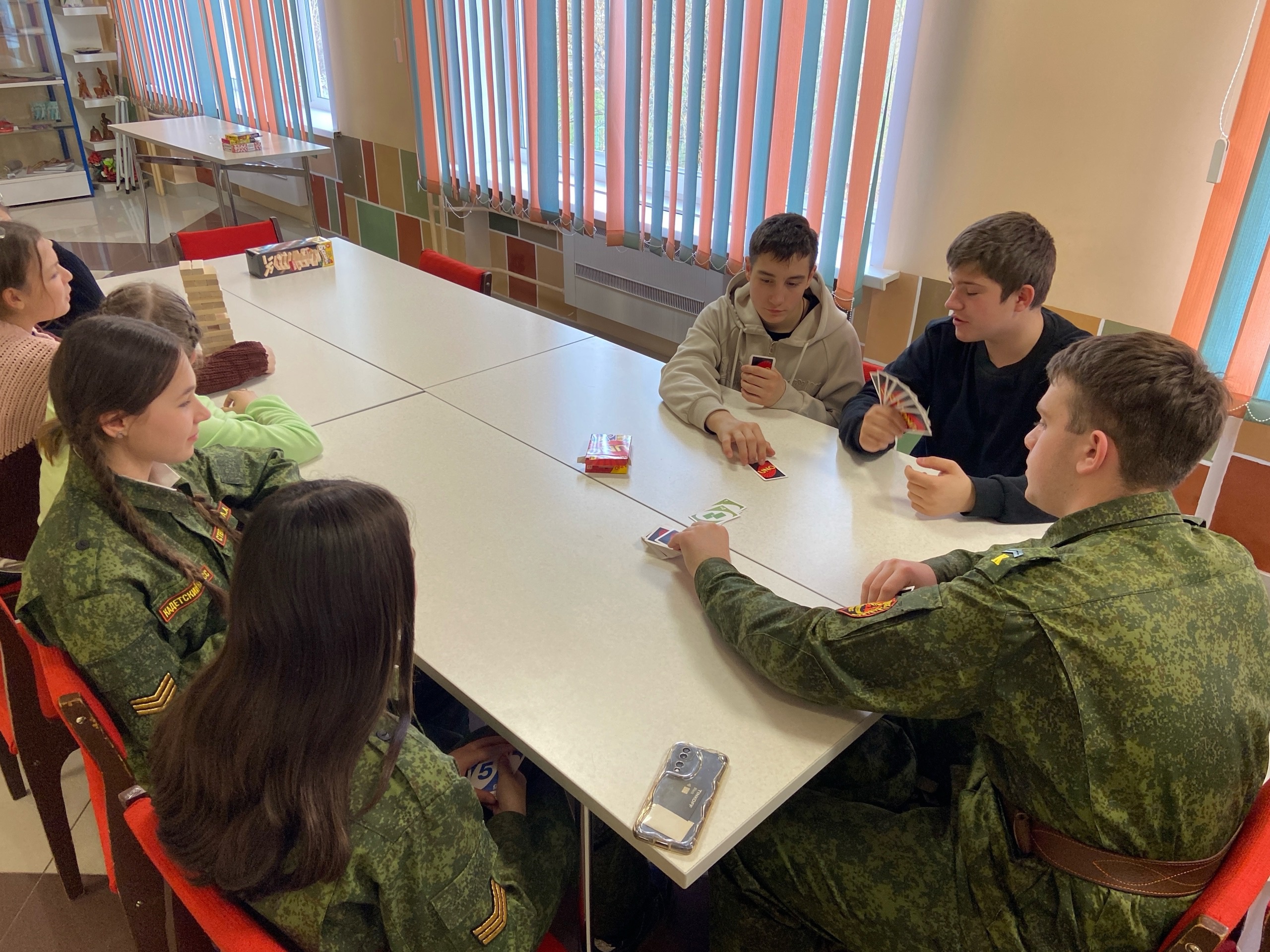 Ребята соревновались в постройке башни и заодно выяснили кто лучше играет в UNO.