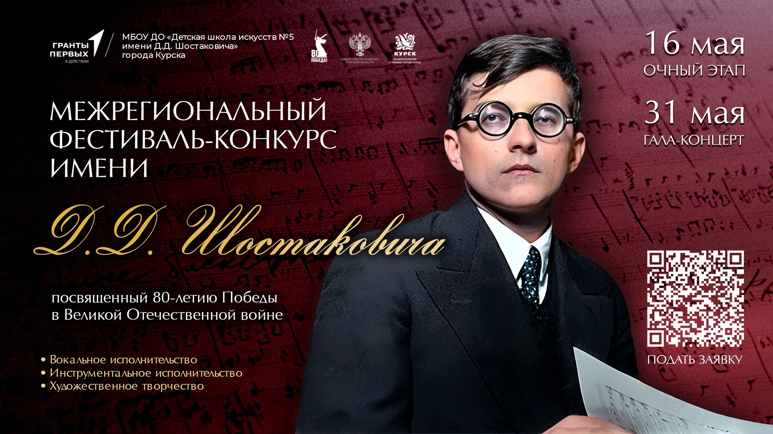 С 16 по 31 мая 2025 года в Курске пройдет Межрегиональный фестиваль-конкурс имени Д.Д. Шостаковича, посвященный 80-летию Победы в Великой Отечественной войне