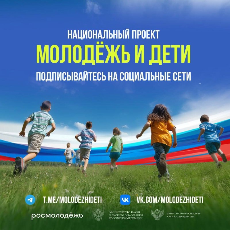 Подписывайся на телеграм-канал о национальном проекте «Молодёжь и дети»!