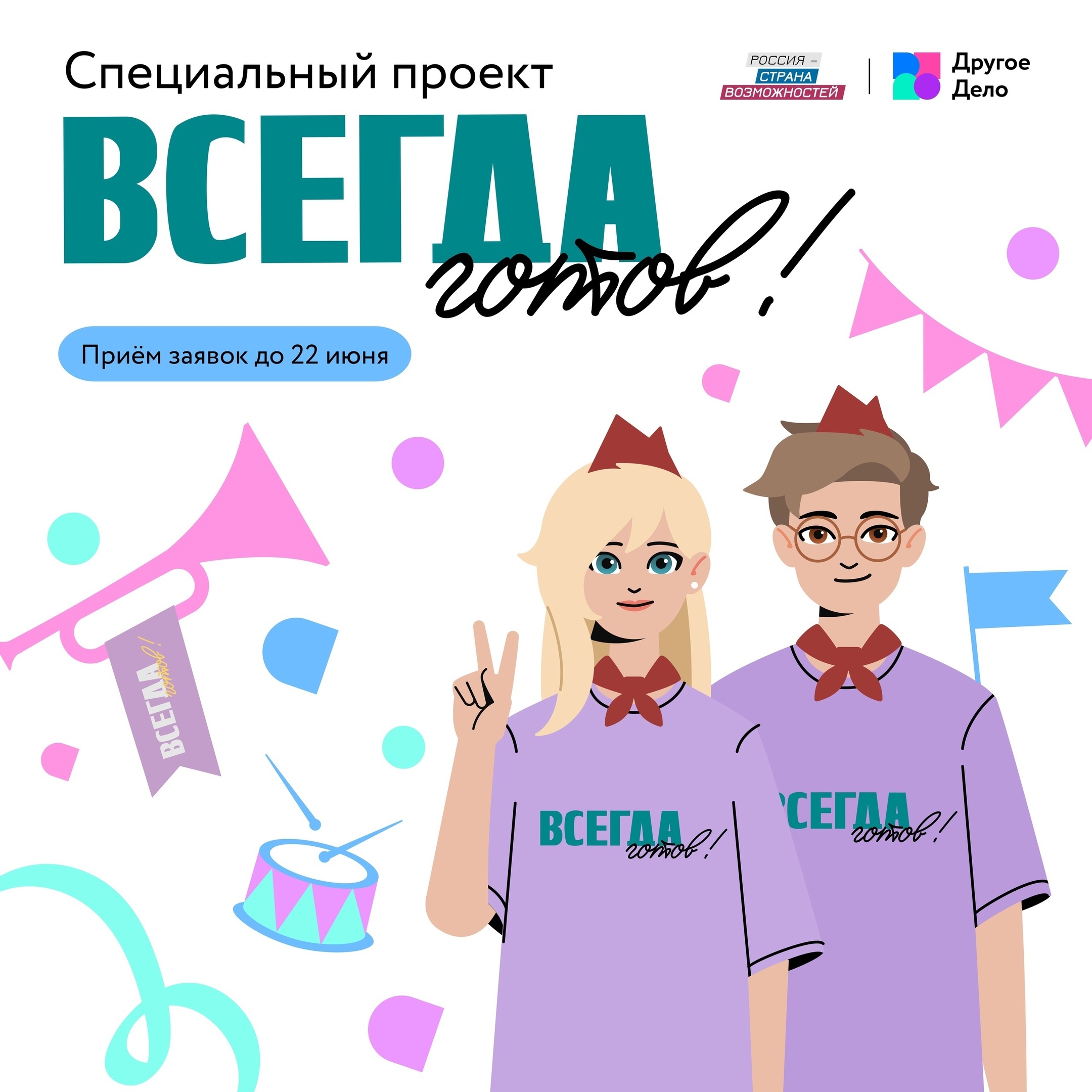 Хочешь раскрыть свой потенциал и круто провести время? Платформа «Другое Дело» приглашает подростков от 14 до 17 лет принять участие в конкурсе, приуроченном к 100-летию пионерского движения!