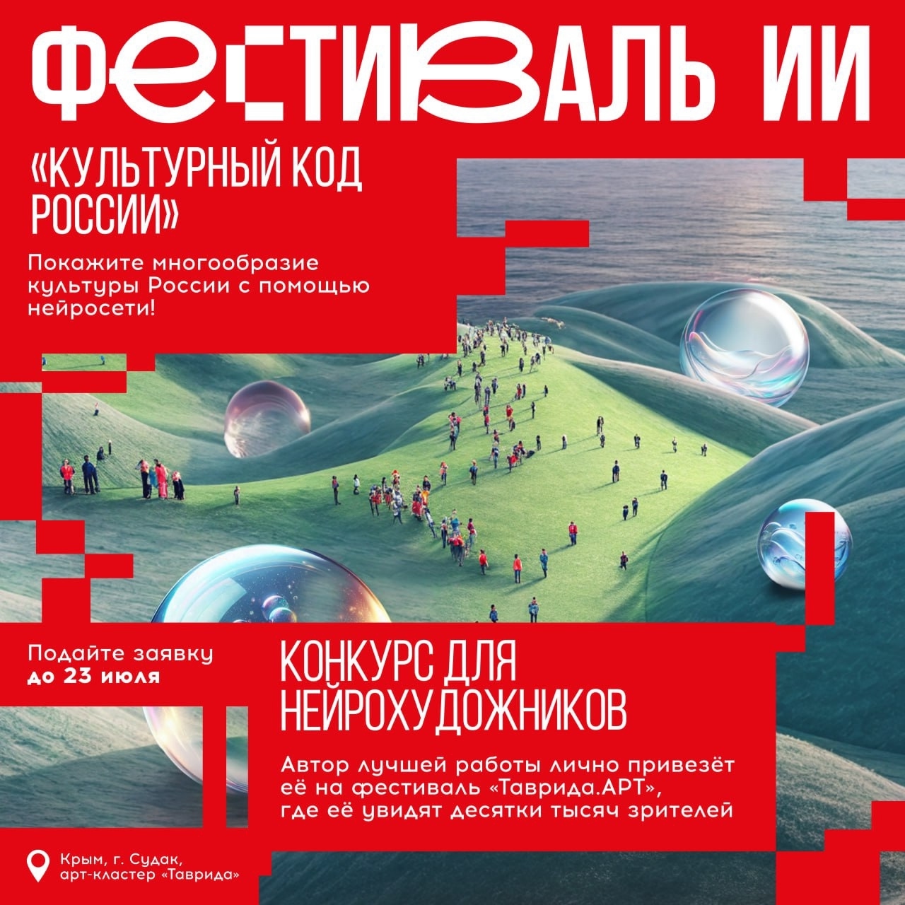 Если вы умеете превращать промты в яркие визуальные истории и готовы исследовать глубины русского искусства через технологии, то подавайте заявку на фестиваль ИИ-искусства до 18:00 23 июля.