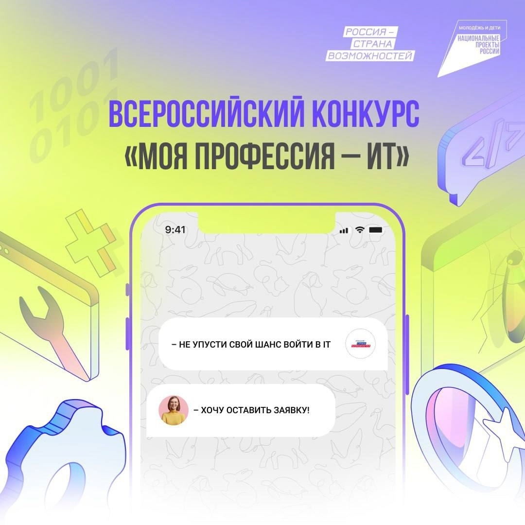 Всероссийский конкурс «Моя профессия – ИТ» реализуется в рамках федерального проекта «Россия – страна возможностей» национального проекта «Молодёжь и дети».