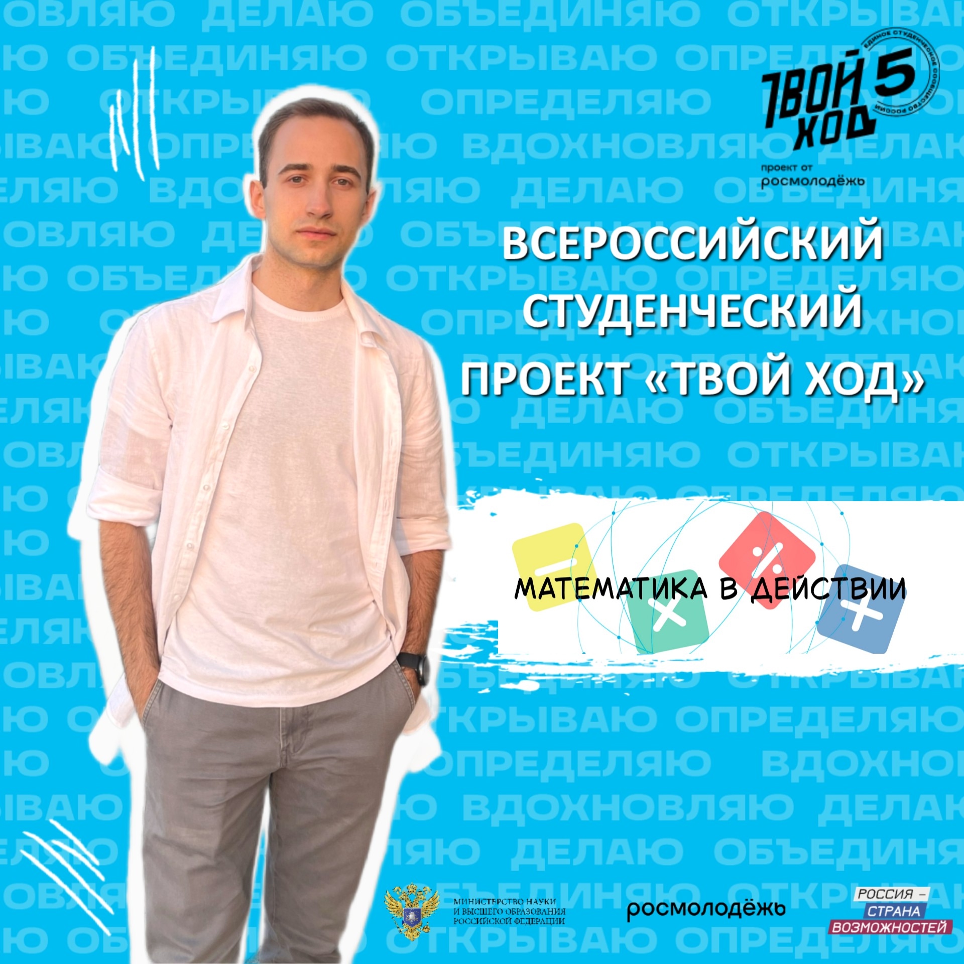 Курский студент Александр Гречишников успешно реализовал проект «Математика в действии» в рамках конкурсного трека «Делаю»Всероссийского студенческого проекта Твой Ход»!