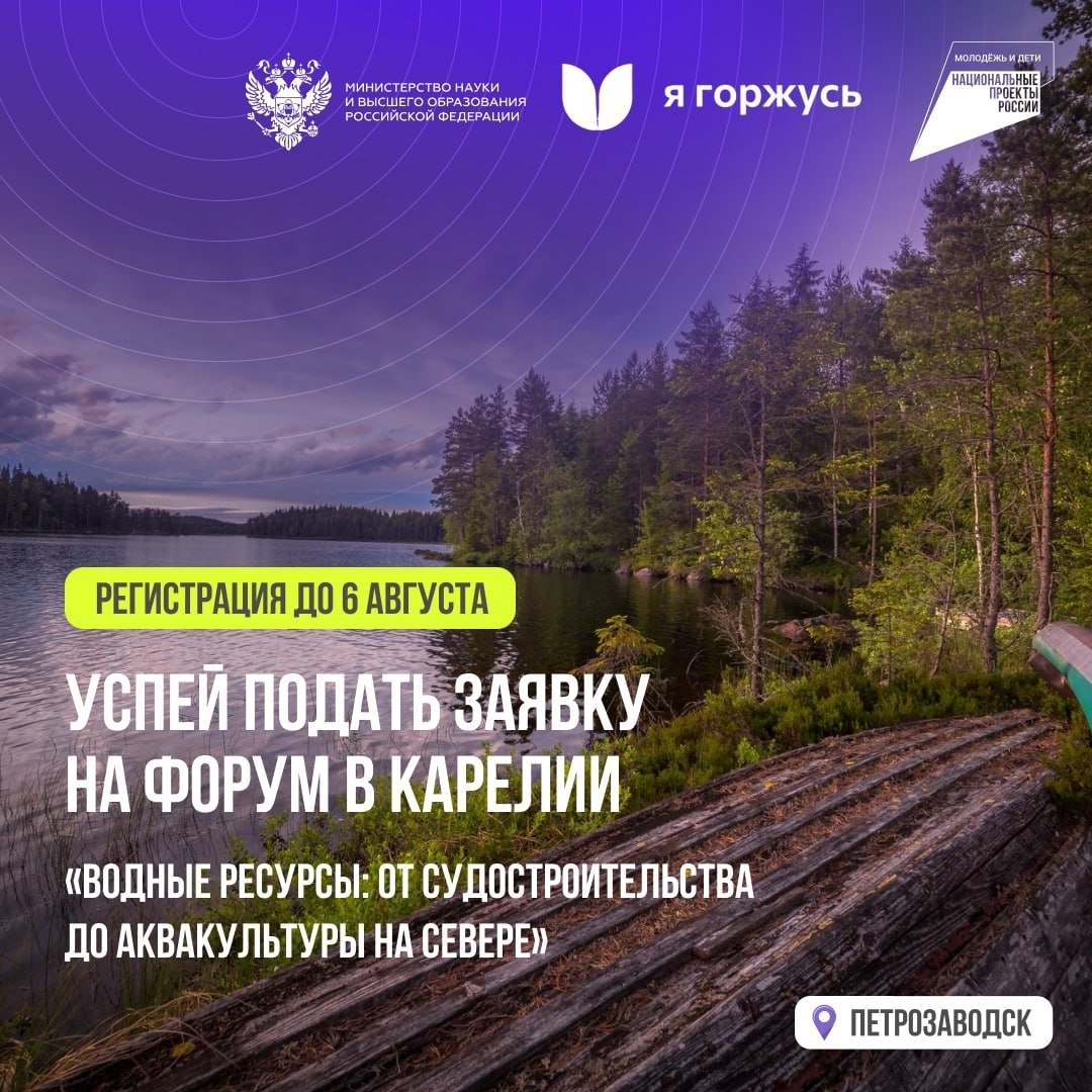 С 28 по 31 августа 2025 года Петрозаводск объединит экспертов, учёных, студентов и предпринимателей из разных областей на форуме «Водные ресурсы: от судостроительства до аквакультуры на Севере»!