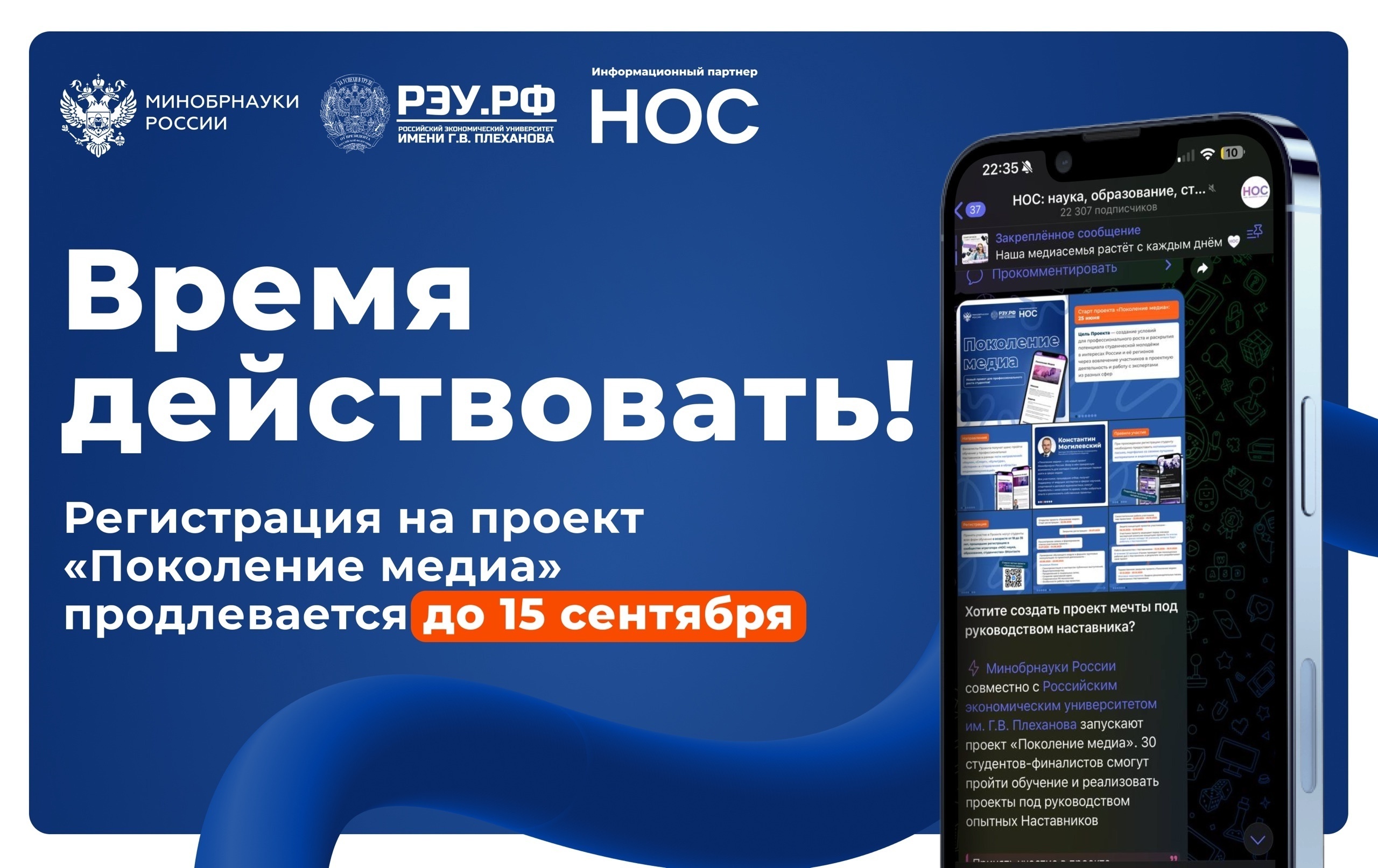 Идет прием заявок на участие в проекте «Поколение медиа», реализуемом Минобрнауки России совместно с РЭУ имени Г.В. Плеханова.