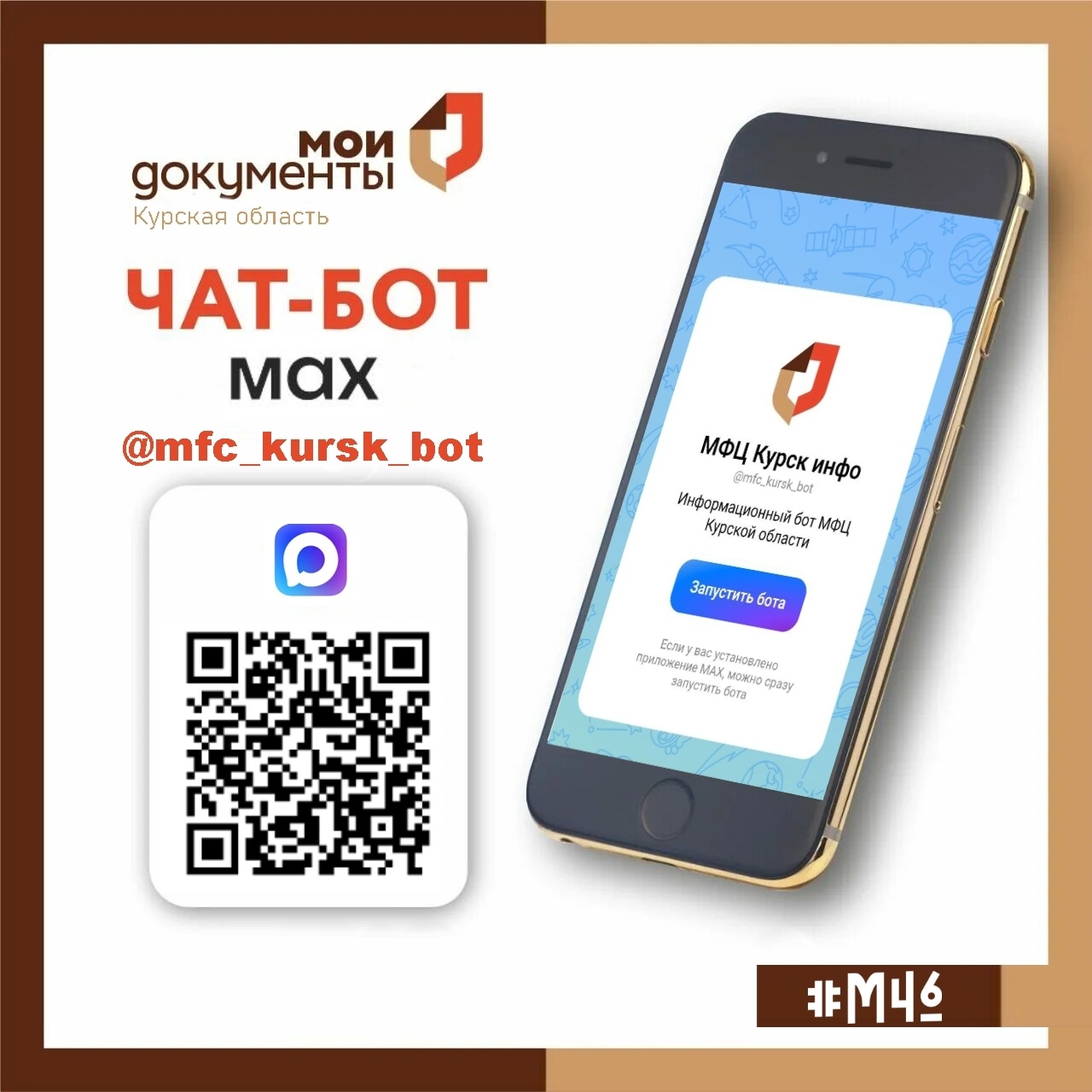 2. Запустить приложение MAX. В строке поиска найти mfc_kursk_bot и перейти в чат. Откроется диалог с информационным ботом. Нажать на кнопку «начать». Приятного пользования!