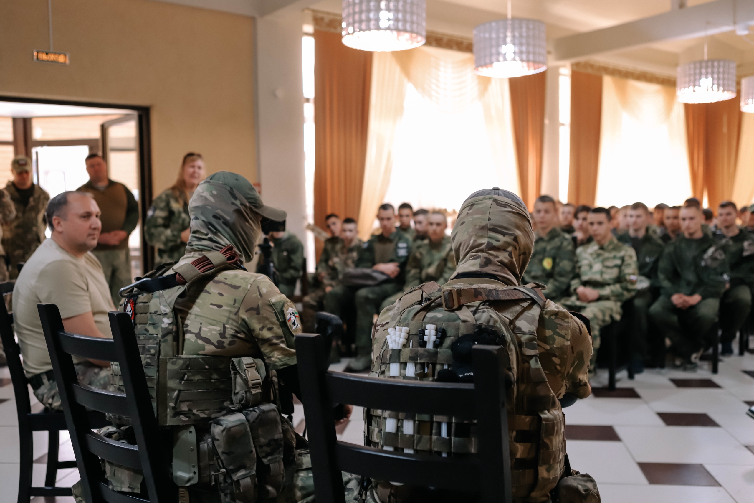 После чего участники отправились на базу cпортивно-стрелкового клуба «Выстрел», где прошла встреча с инструкторами «Ахмат» с позывными «Смоль» и «Чулым» в рамках проекта «Диалоги с Героями». Они ответили на интересующие вопросы ребят. Также на полигоне стрелкового клуба ребята прошли огневую подготовку, неполную разборку и сборку и снаряжение магазина автомата Калашникова/пистолета Макарова.
