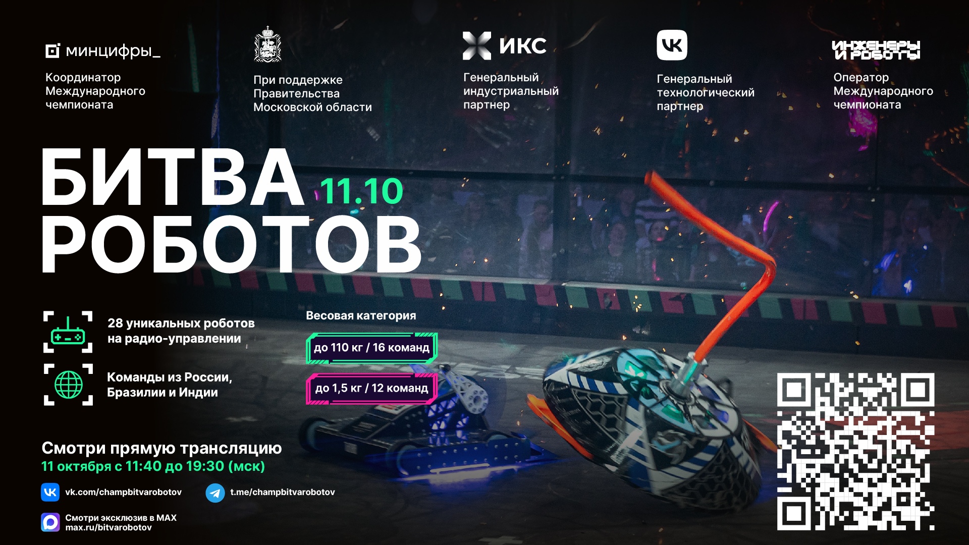 Второй отборочный этап Международного чемпионата по битве роботов сезона 2025 года пройдет 11 октября в конгрессно-выставочном центре «Патриот».