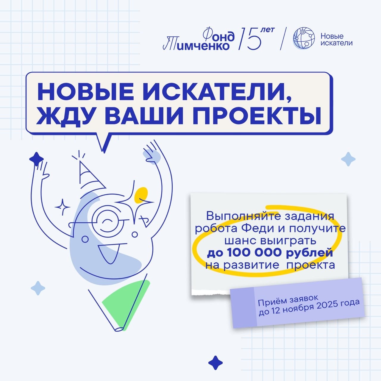 ✔Победители получат финансовую поддержку проекта до 100 000 рублей, поддержку экспертов, а также смогут поучаствовать в обучающих программах и других мероприятиях Фонда Тимченко.