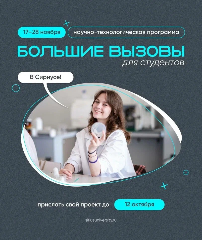 Студенты Курской области могут принять участие в научно-технологической программе «Большие вызовы» университета «Сириус», которая пройдет с 17 по 28 ноября.