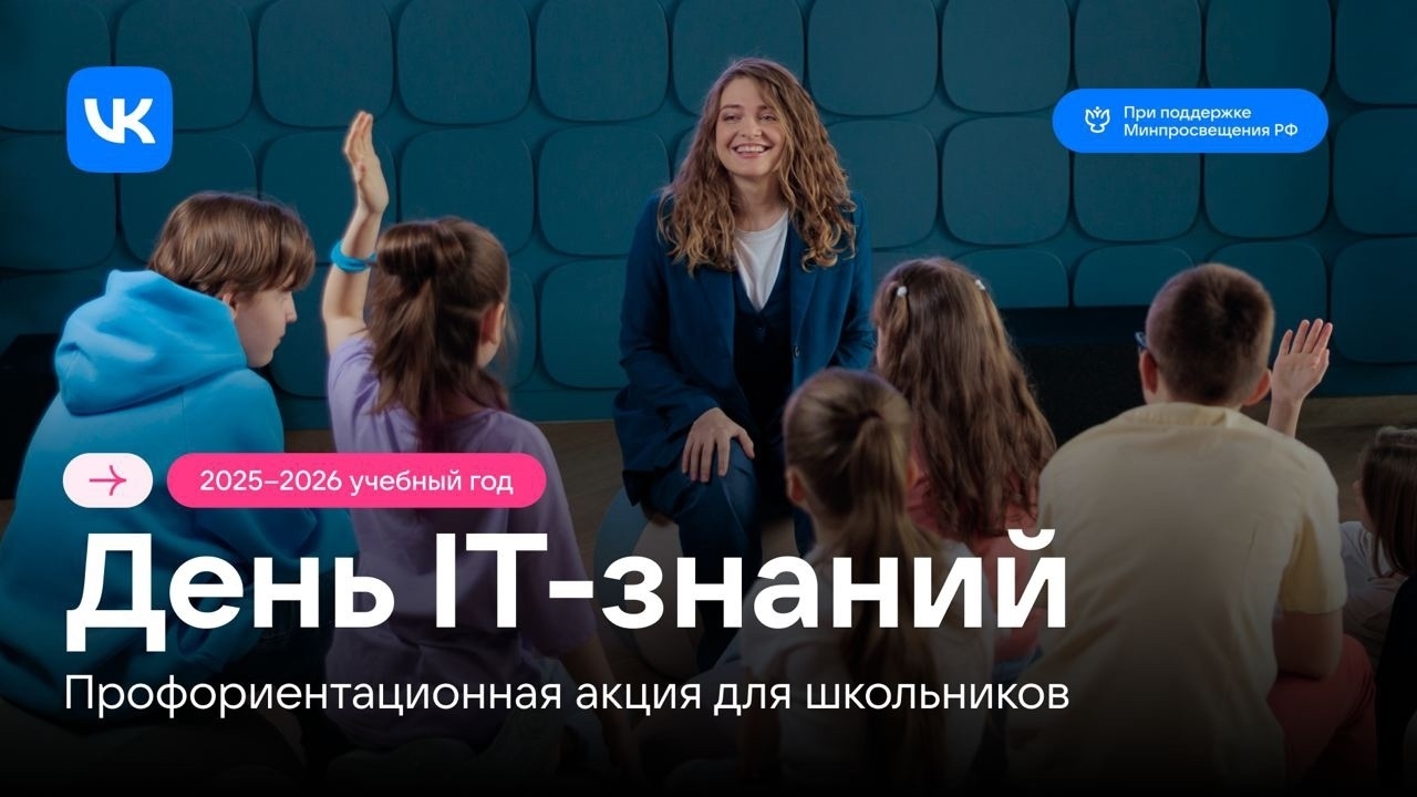 Провести «День IT-знаний» можно в любой день в течение 2025/2026 учебного года. Для этого необходимо попросить учителя подать заявку на сайте проекта: vk.cc/cPZAHJ