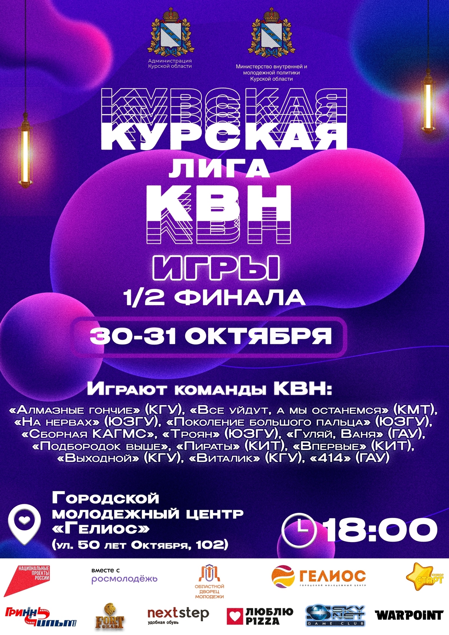 Уже 30 и 31 октября мы узнаем финалистов Курской Лиги КВН сезона 2025!