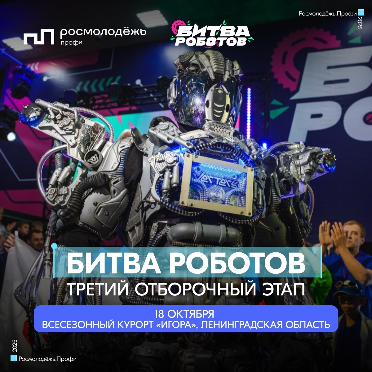 18 октября в Ленинградской области пройдёт третий отборочный этап самого технологичного чемпионата — «Битва роботов».