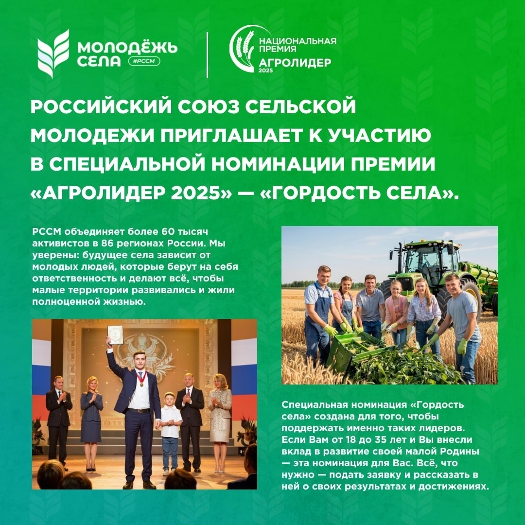 РССМ совместно с национальной премией «АГРОЛИДЕР 2025» учредил специальную номинацию — «Гордость села».