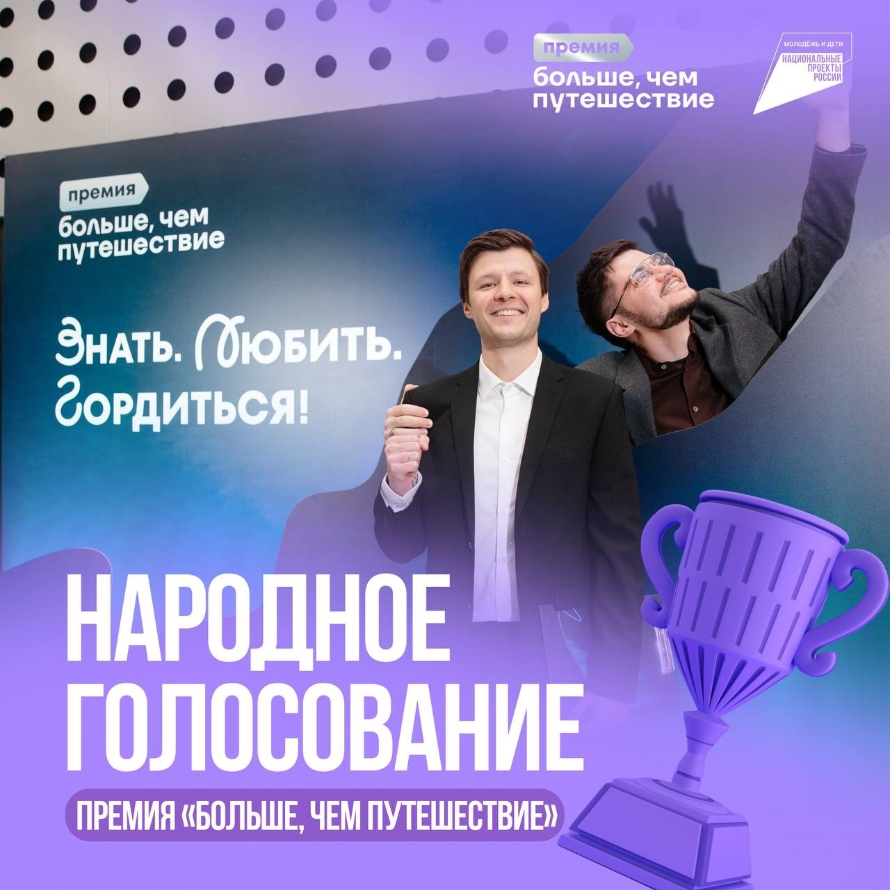 Всероссийская премия «Больше, чем путешествие» реализуется в рамках национального проекта Нацпроект «Молодёжь и дети».