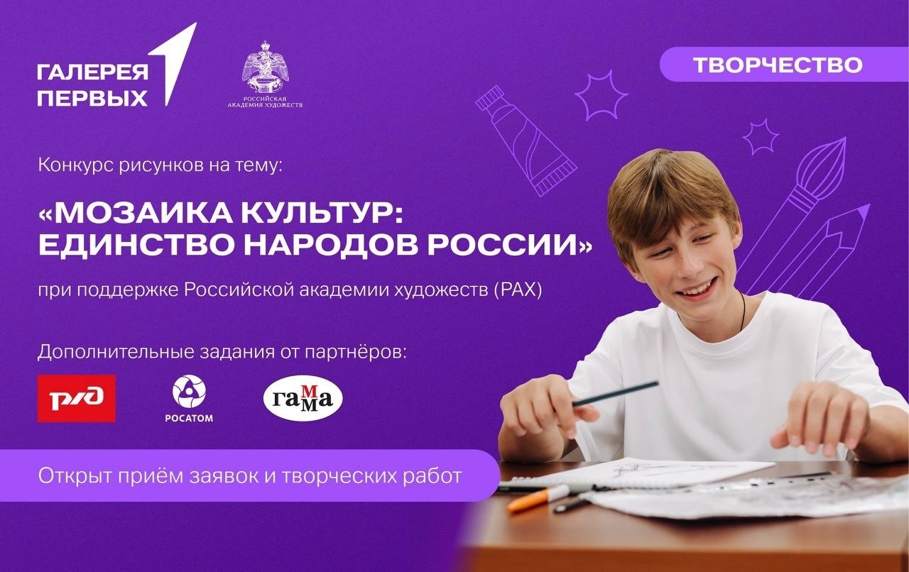 Конкурс Движения Первых при поддержке Российской академии художеств — шанс для молодых художников (от 6 до 17 лет) показать свои таланты, отразив многообразие нашей страны через рисунки.