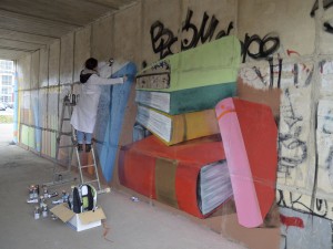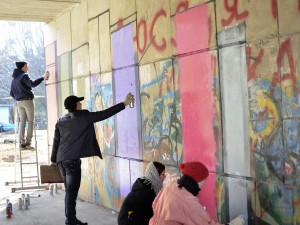 Молодежная акция «Поколение NEXT на волне чтения» по раскраске стен в стиле «граффити» Культурного центра семейного чтения и досуга.