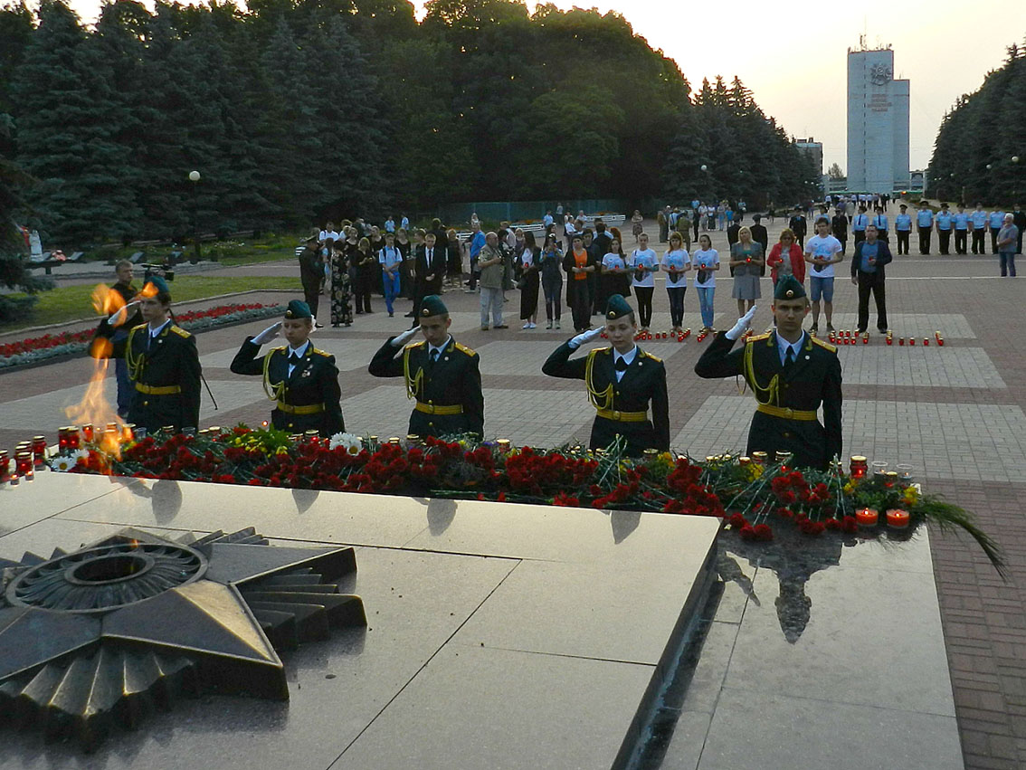 В Курске, как и во многих городах России в память о 75-ой годовщине начала Великой Отечественной войны в этот день на рассвете были зажжены поминальные свечи, проведен траурно-торжественный митинг, возложены цветы и гирлянды к подножию памятников воинам и вечному огню.