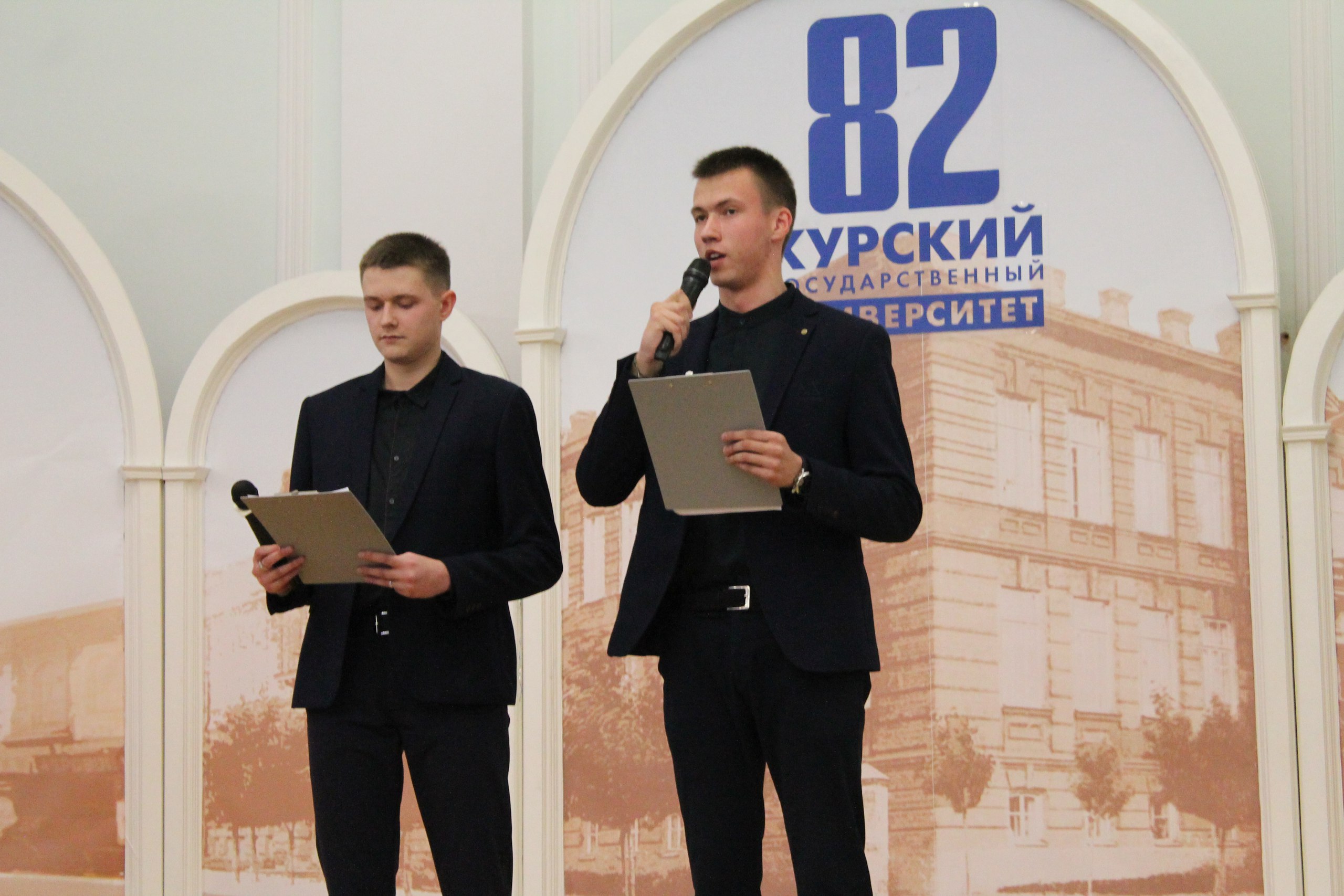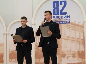 В актовом зале Курского государственного университета собрались студенты курских вузов – ведущие университетских и городских мероприятий. Конкурс для них проходил в 2 этапа – домашнее задание и задание от жюри. Первое представляло собой заранее подготовленный сценарий проведения какого-то массового мероприятия. События для них были выбраны самые разные – памятные даты, музыкальные вечера, открытие фестивалей, праздничные дни, конкурсы красоты и даже был заявлен сценарий Всемирного фестиваля молодежи и студентов-2017. Его очень живо и ярко представил дуэт студентов из Курской государственной сельскохозяйственной академии – Андрей Цыганков и Александр Глушенко.