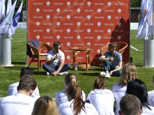 Диалог проходил на свежем воздухе в теплой дружеской атмосфере. Участникам не терпелось поговорить со своим кумиром, поэтому вопросы от аудитории начались сразу.