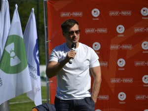 Алексей Немов также задал встречный вопрос аудитории: «Интересно узнать, чем вы все занимаетесь?», ответ прозвучал единогласно: «Делаем добро». Спортсмен пожелал участникам быть достойными людьми, выполнять свою работу на высшем уровне и продолжать делать добрые дела.