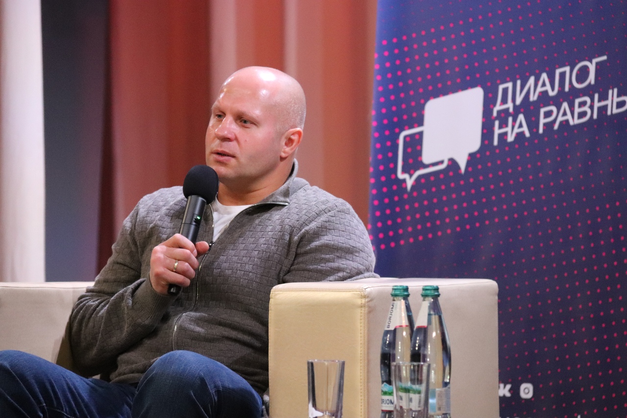 Снова Дворец молодежи и снова аншлаг – сегодня с молодежью города Курска в рамках проекта «Диалог на равных» прошла встреча с российским спортсменом, четырёхкратным Чемпионом Мира по смешанным боевым искусствам, четырёхкратным Чемпионом Мира и шестикратным Чемпионом России по боевому самбо, Заслуженным мастером спорта по самбо, мастером спорта международного класса по дзюдо Федором Емельяненко.