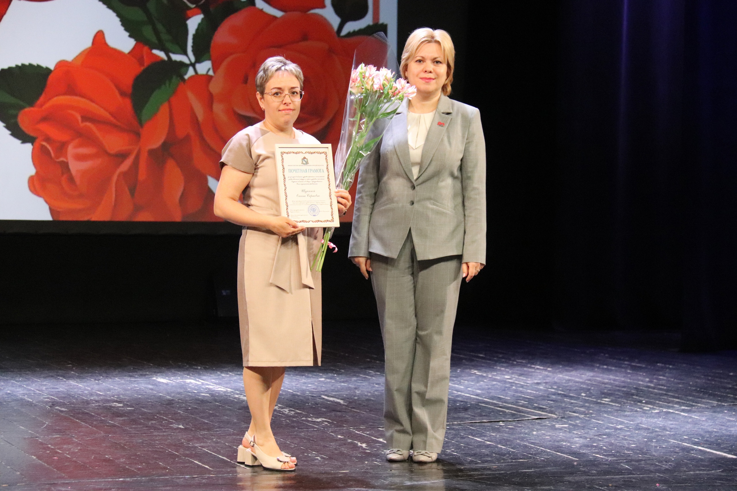 Со сцены курских врачей поздравили солисты и творческие коллективы областного Дворца молодежи.