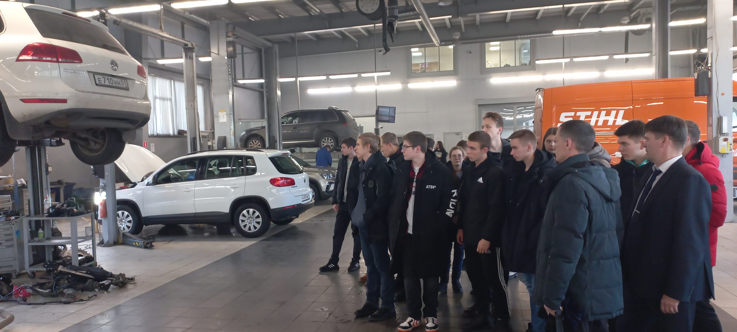 Первое хорошее впечатление произвело большое, светлое помещение, где производится ремонт автомобилей. Во время экскурсии ребята увидели работу автослесарей. Им рассказали о структуре автоцентра, о том, как происходит приемка автомобилей для проведения технического обслуживания и ремонта, познакомили с оборудованием и инструментом, который используют автомеханики. Обучающихся провели по всем боксам и рассказали, какие работы там выполняются. В заключение все ребята ознакомились с техникой безопасности при ремонте автомобиля.