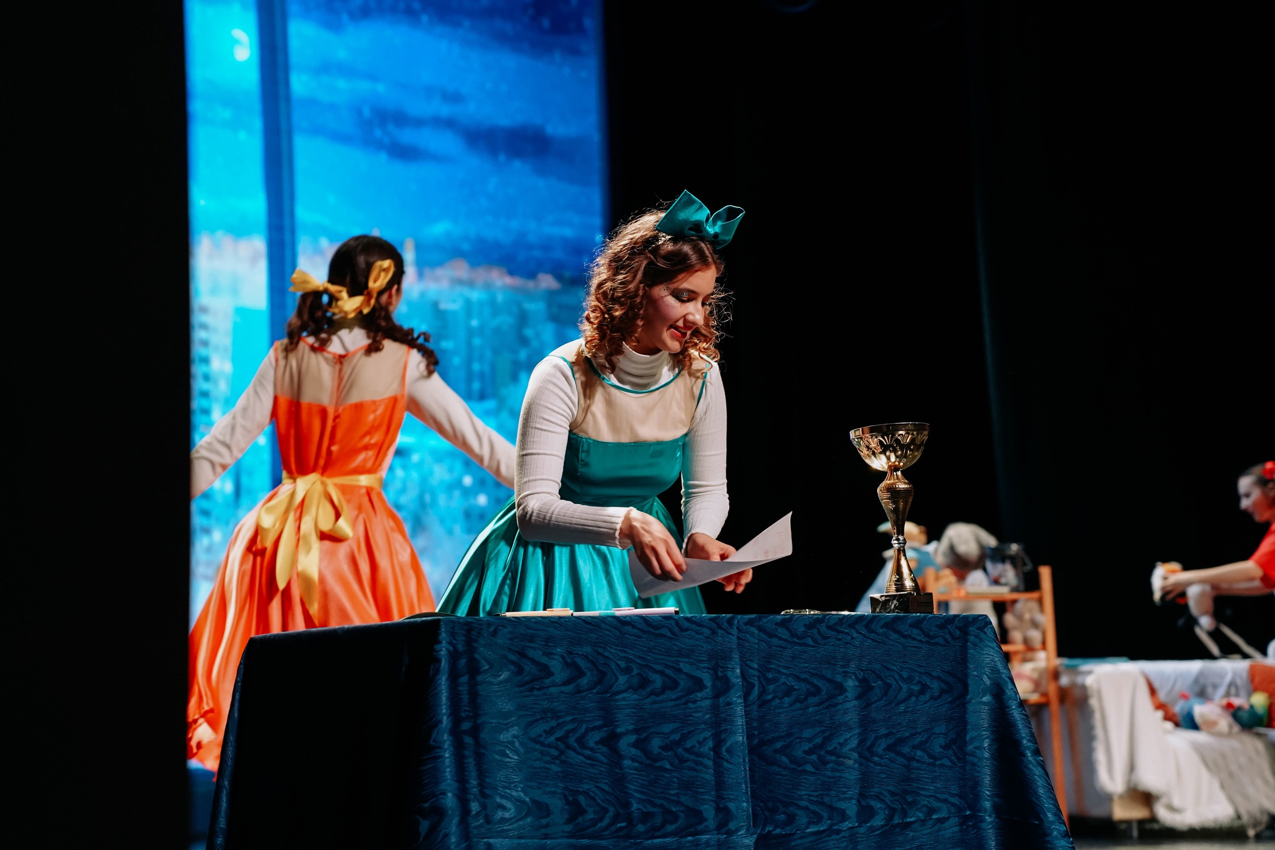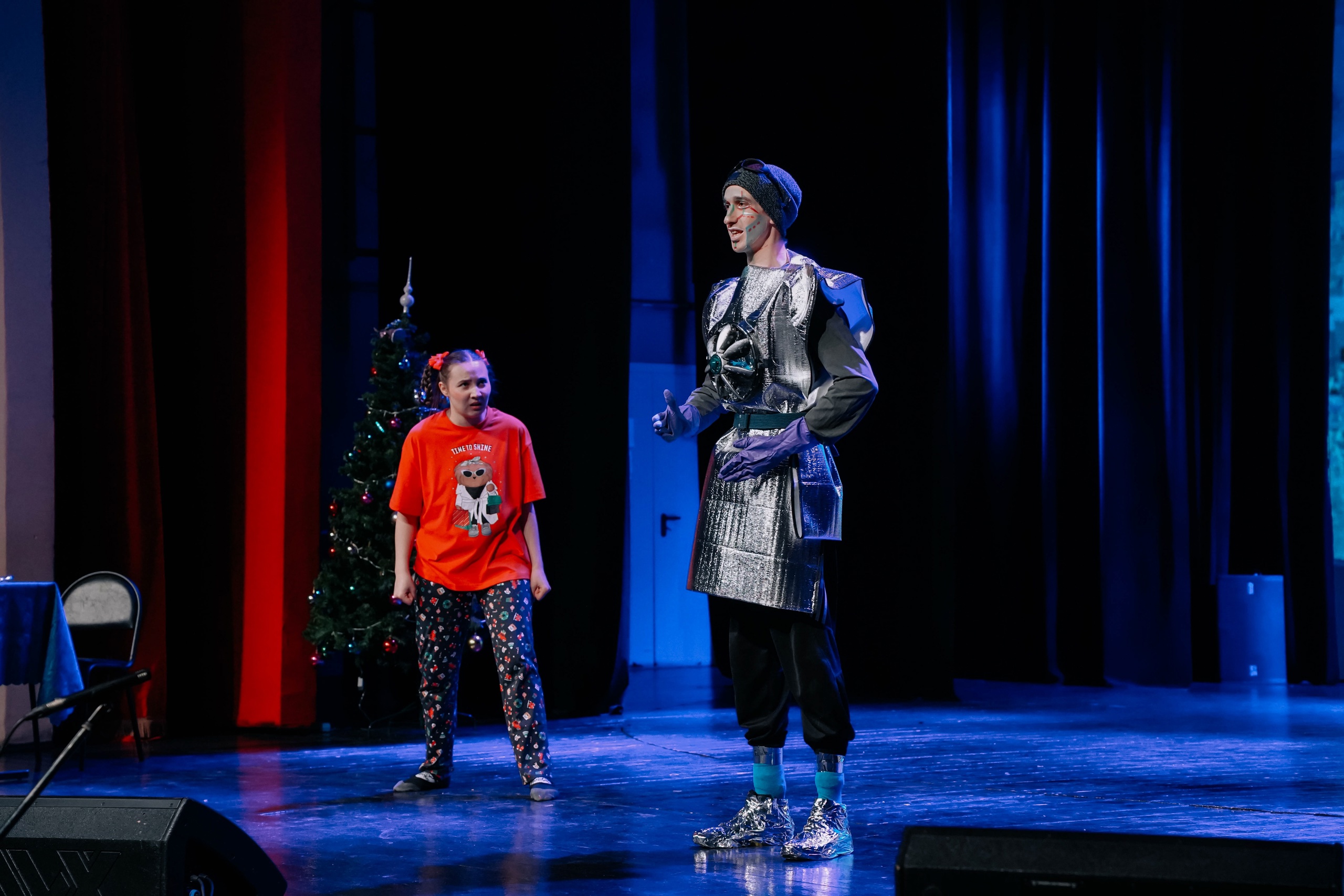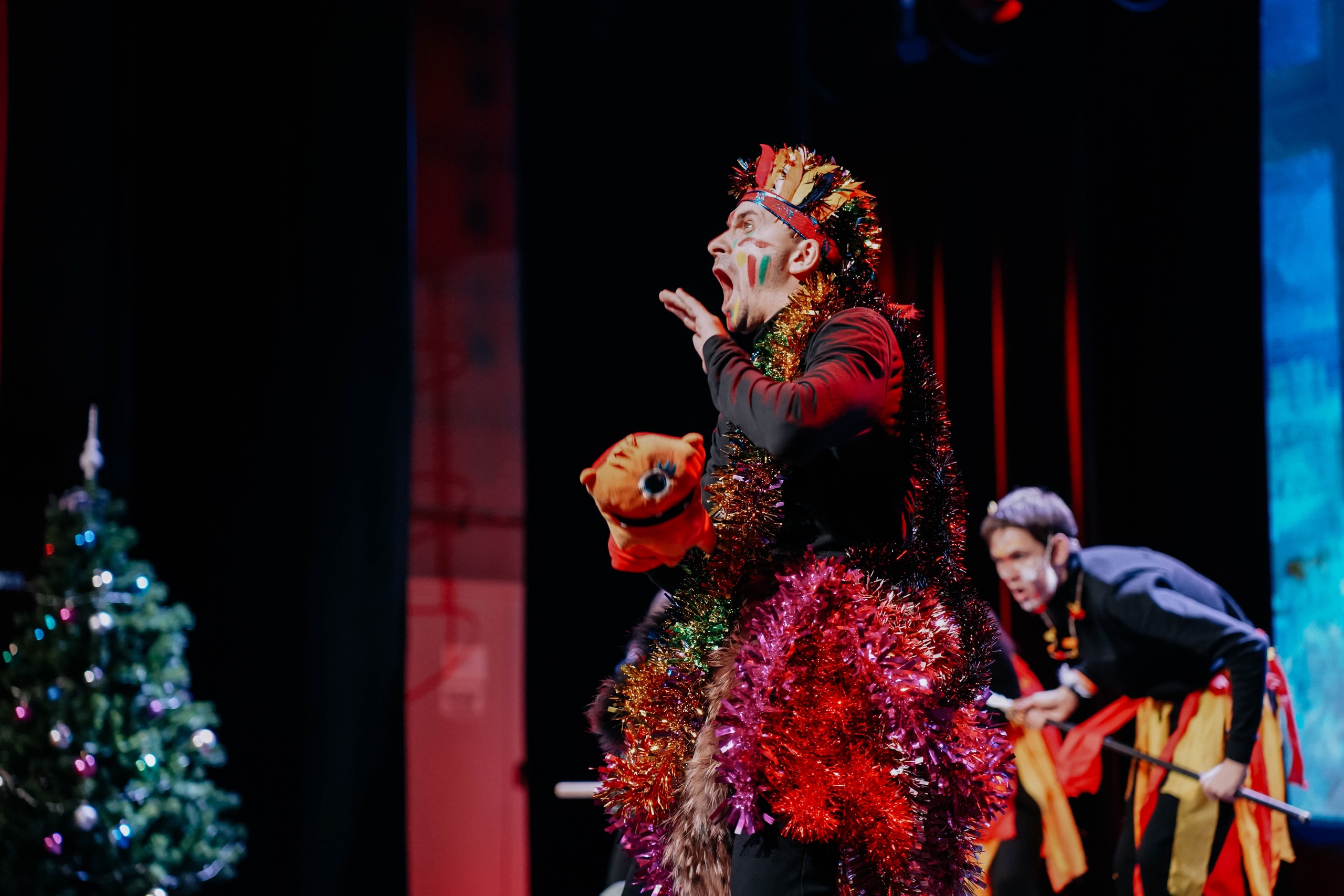 Ребята оказались в сказочном мире новогоднего представления «Переполох игрушек» с участием Деда Мороза и Снегурочки, сказочных персонажей в исполнении артистов Театра-студии «Гастион».