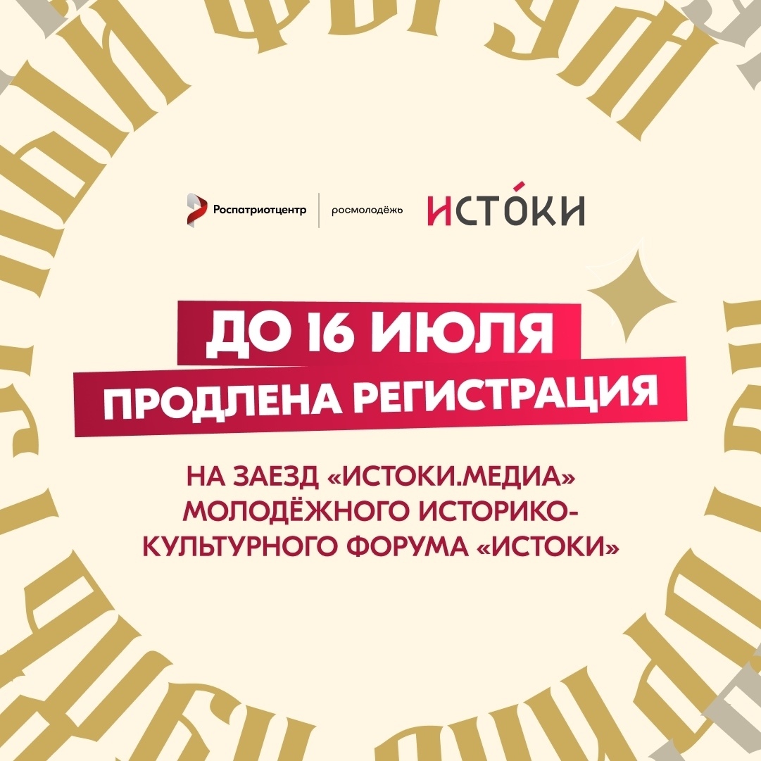 Регистрация на участие в заезде «Истоки.Медиа» молодёжного историко-культурного форума ИСТОКИ продлена до 16 июля