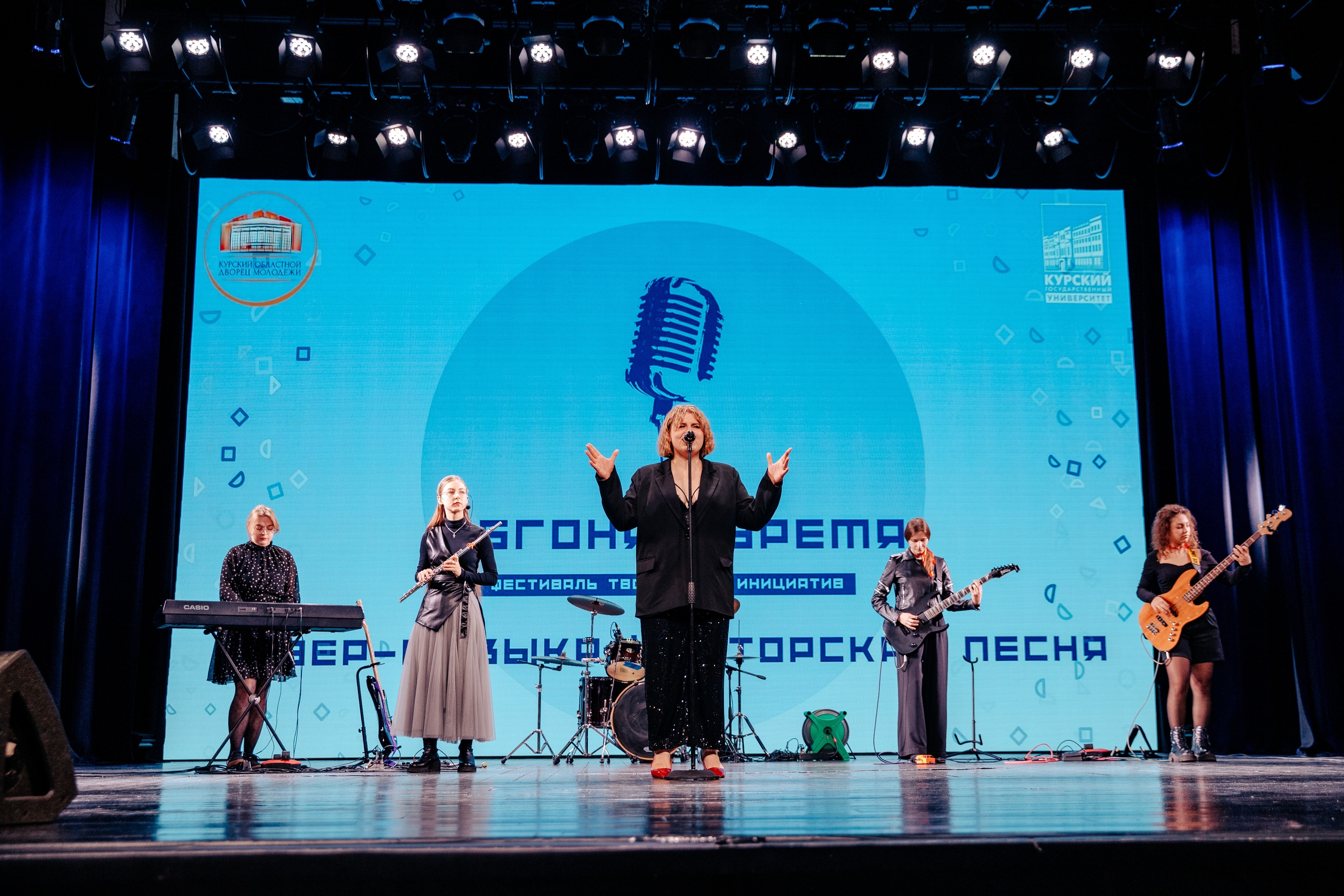 Сегодня Дворец молодежи стал площадкой для второго конкурсного дня фестиваля «Обгоняя время» — масштабного события Курского государственного университета.