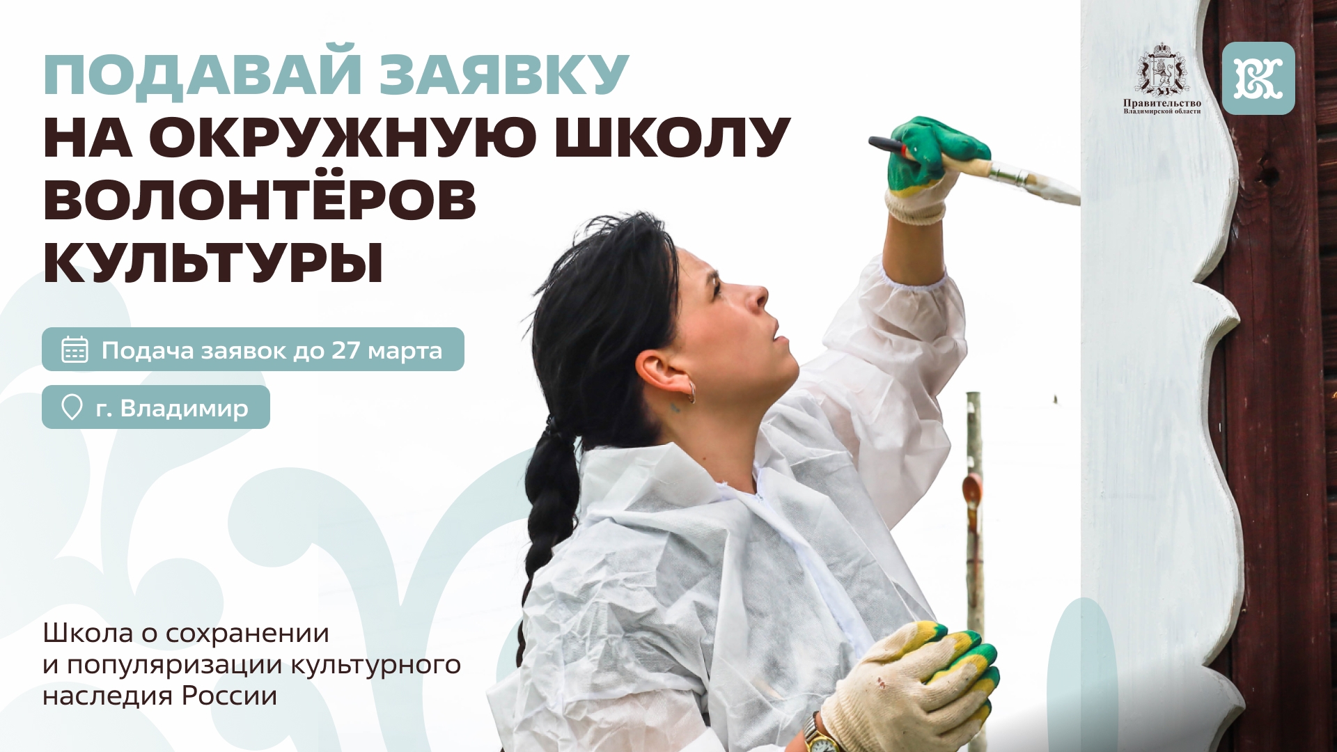 Первая окружная школа пройдет во Владимире с 26 по 29 апреля. Для участия нужно пройти конкурсный отбор и подать заявку до 27 марта на платформе Добро.рф.