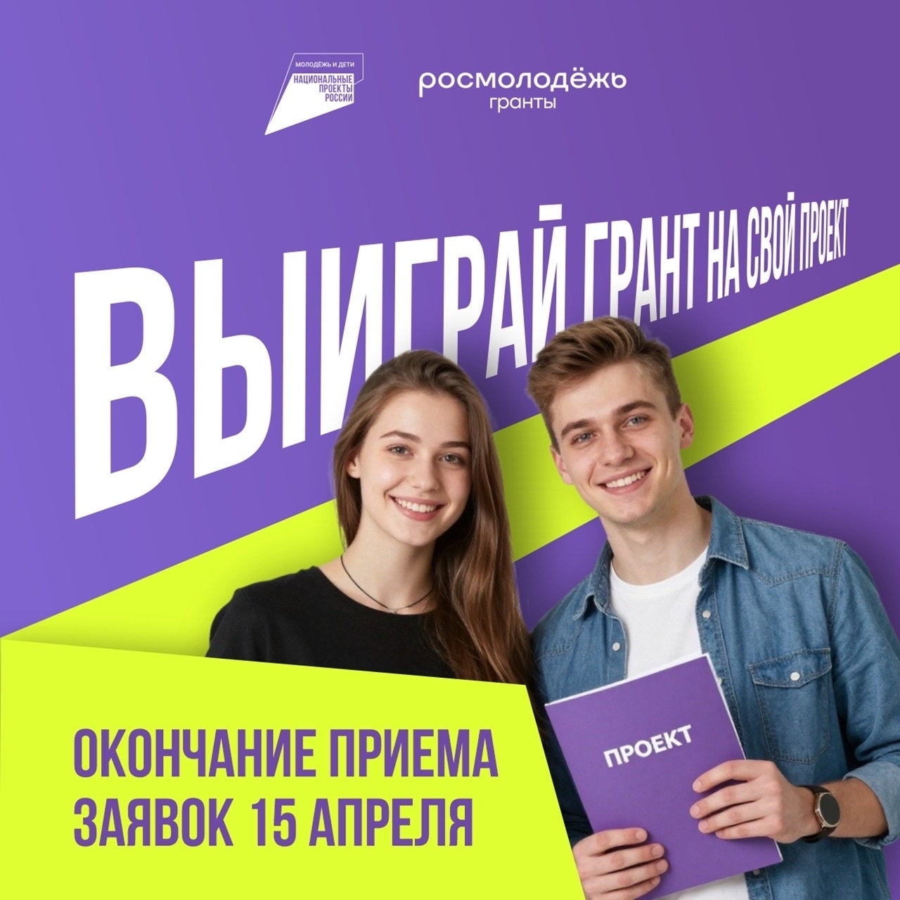 Успей получить поддержку для своего социального проекта в рамках 1 сезона Росмолодёжь.Гранты до 15 апреля.