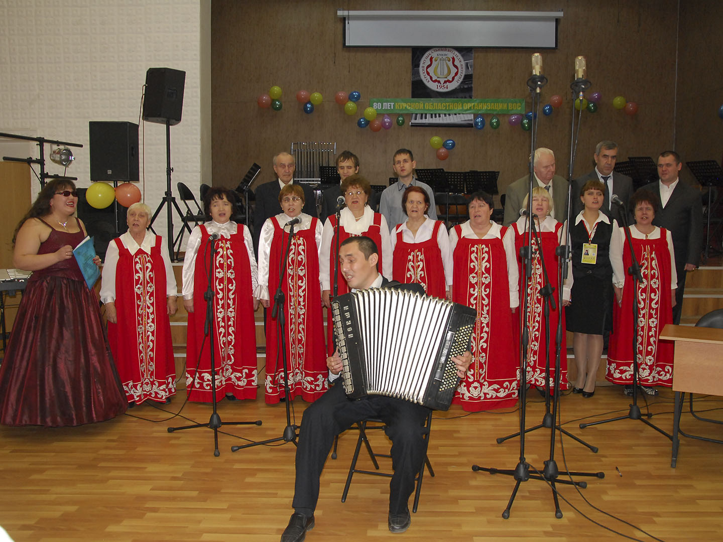 «С Днем рождения, ВОС, с юбилеем! Ты в душе пробуждаешь свет, мы сердцами друг друга согреем, яркой жизни откроем секрет» — теплыми поэтическими строками 6 ноября 2014 года в Курском музыкальном колледже-интернате для слепых началось праздничное мероприятие, посвященное 80-летию образования Курской областной организации Общероссийской общественной организации инвалидов «Всероссийское ордена Трудового Красного Знамени общество слепых». С приветственной речью к участникам обратился председатель общества Валентин Викторович Твердохлеб. По доброй традиции в юбилей вспоминали и благодарили тех, кто творил историю Курской областной организации Всероссийского общества слепых. Были вручены юбилейные награды : знаки «За заслуги перед Всероссийским обществом слепых», знаки «Заслуженный работник ВОС», Почетные грамоты Центрального Правления ВОС. Юбилейными Почетными грамотами региональной организации ВОС и благодарственными письмами президента ВОС были награждены более 100 человек. Прозвучали музыкальные, вокальные номера в исполнении победителей творческих конкурсов. В рамках празднования юбилея прошла выставка прикладного художественного творчества членов ВОС, демонстрация фильма о деятельности КОО ВОС, круглый стол.